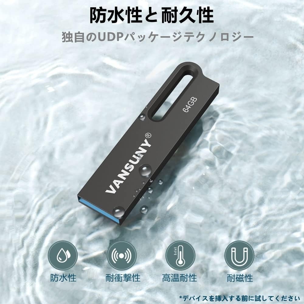 Vansuny USBメモリ 64GB USB 3.0 フラッシュドライブ 高速 金属製 防水 USBメモリー64ギガ 大容量 Windows PCに対応(黒)