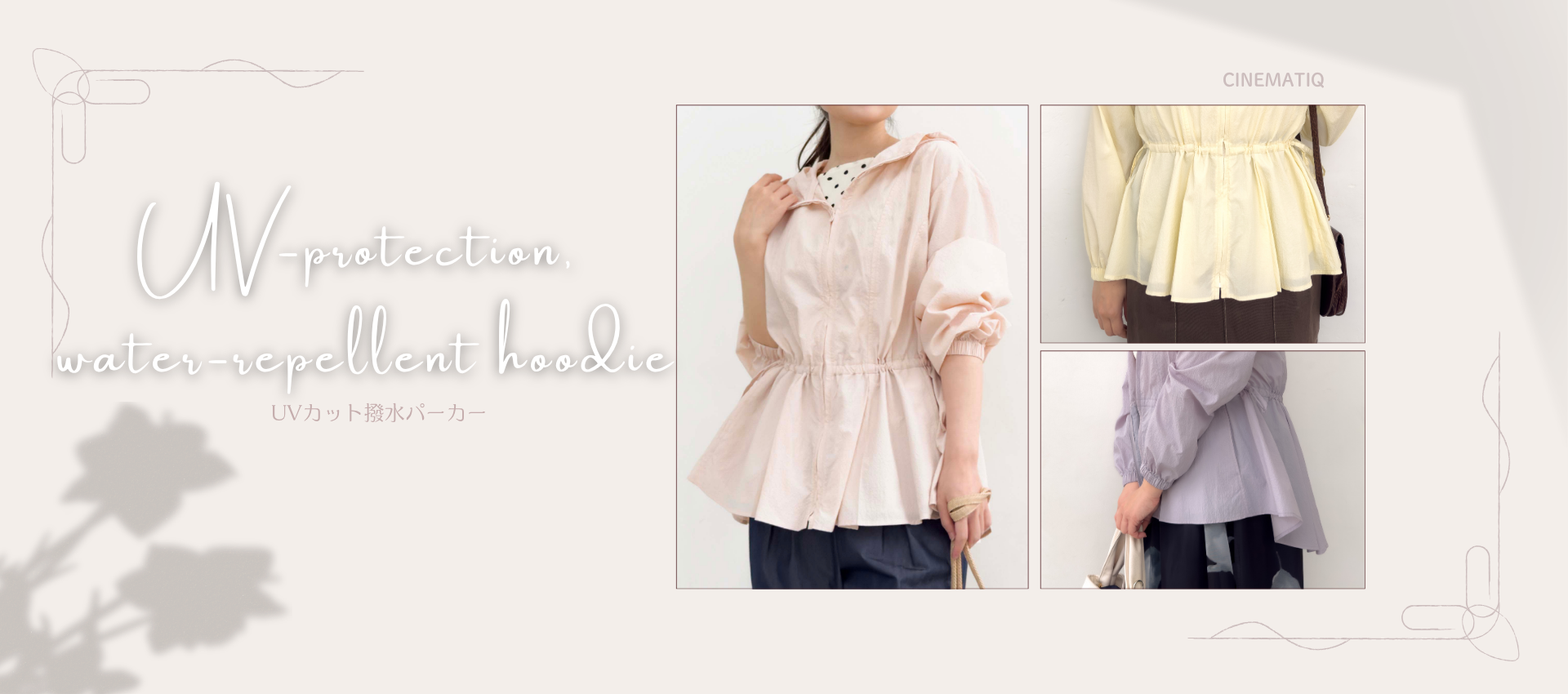 株式会社Alyo(本社:東京都港区、取締役社長:大橋茉莉花)は、アパレルブランドのCINEMATIQより「撥水UVカットパーカー」を3月25日(水)より発売いたします。株式会社Alyoは「女性が人生を楽しめる社会へ」を企業理念として、日々デザイン性と機能性を兼ね備えた商品の企画・販売を行っています。これまでに伸びがよくシワになりにくい生地/ご自宅で洗濯可能/コアサイズ~グラマーサイズさんや妊婦さんまで幅広く楽しめるサイズ設計などの機能性を持った商品を展開してきました。