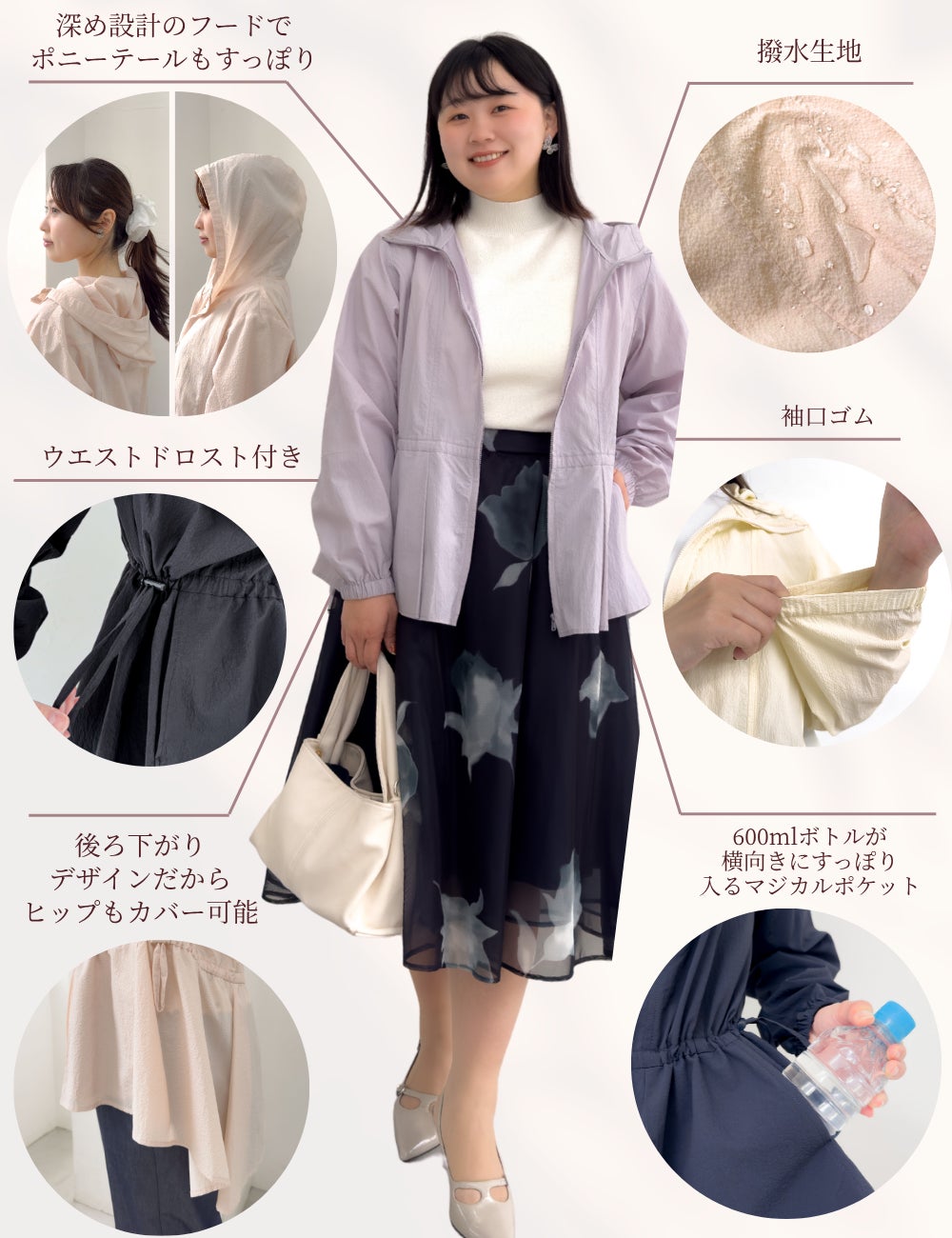 体型を選ばないリアルフリー設計で、妊娠中や抱っこ時にも羽織れる、季節を問わず使える万能ライトアウターです。