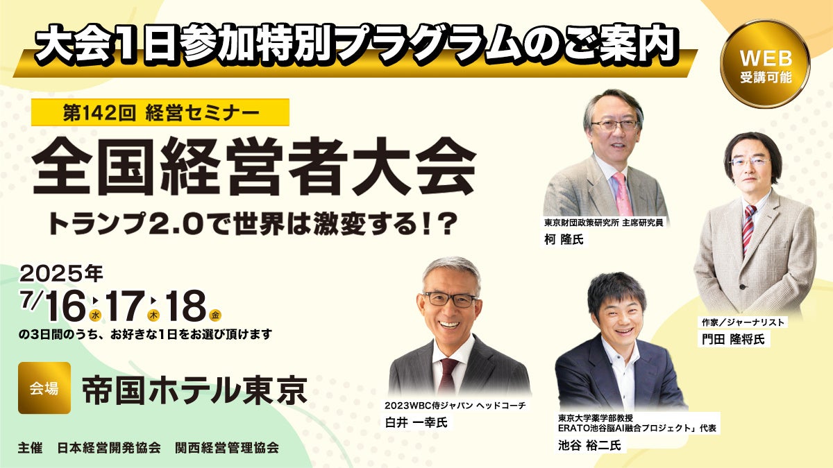 【全国経営者大会】1日だけの“体験参加”が可能に|まずは1日、試してみませんか?─「1日参加特別プログラム」を新設(東京・帝国ホテル)