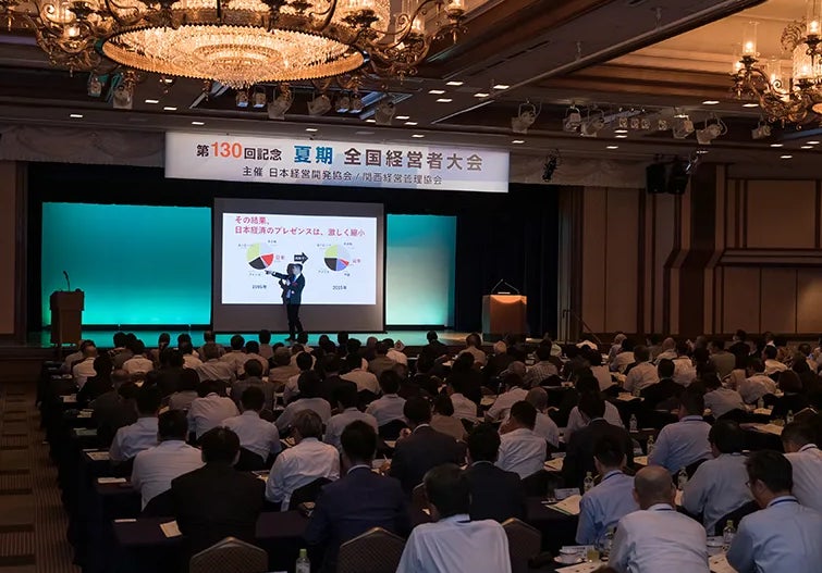 産業界の要望に応え、時代に則した企業経営の啓蒙に尽力し、国内産業の成長に貢献してきました。定例の「全国経営者大会」は、500人規模の経営者セミナーとして毎年2回開催され、