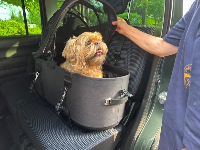 「車に乗せるとき、いつものコットがあるだけで明らかに落ち着きが違います」(40代男性・グリフォン飼い主)