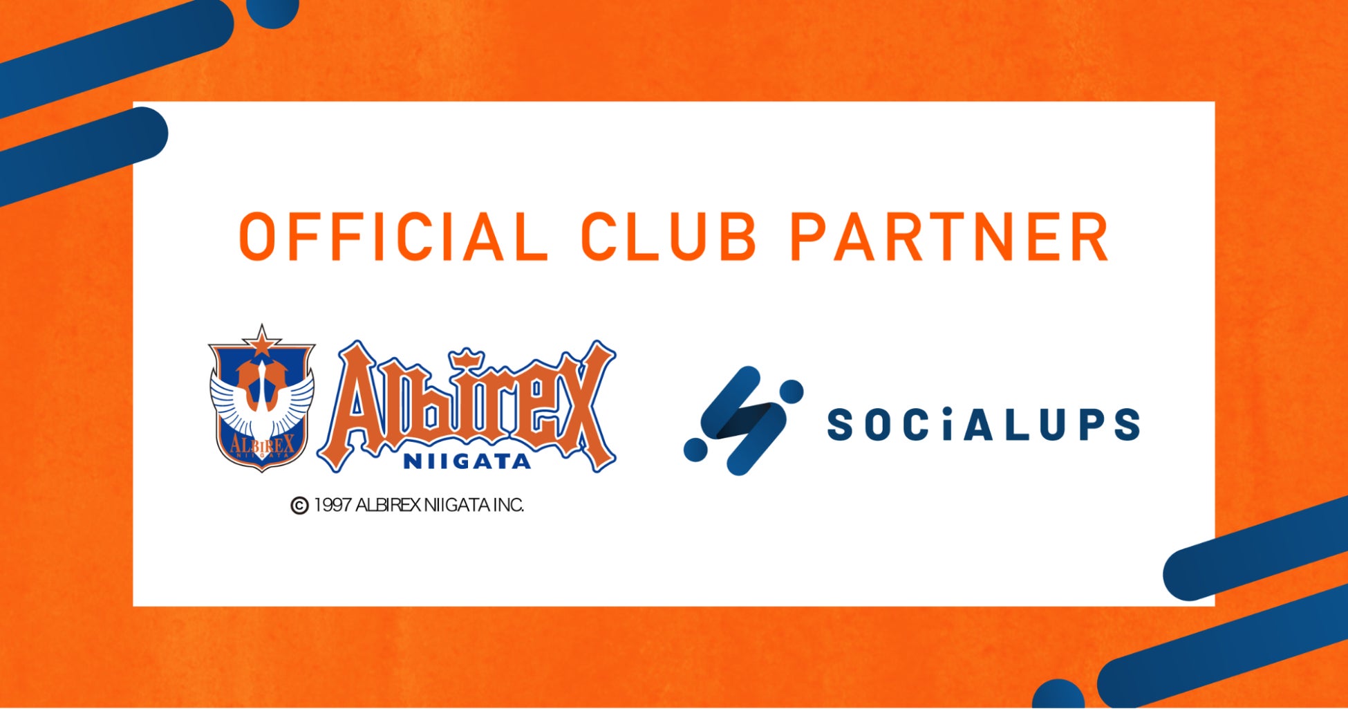 Socialups株式会社(本社:新潟市中央区、代表取締役社長:髙瀬章充、以下Socialups)は、明治安田J1リーグに所属するアルビレックス新潟(本社:新潟県新潟市、代表取締役社長:中野 幸夫)のオフィシャルクラブパートナー契約を更改いたしましたのでお知らせいたします。