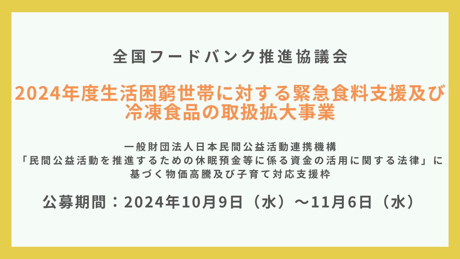 2024年度物価高騰及び子育て対応支援助成「2024年度生活困窮世帯に対する緊急食料支援及び冷凍食品の取扱拡大事業」の公募のお知らせ