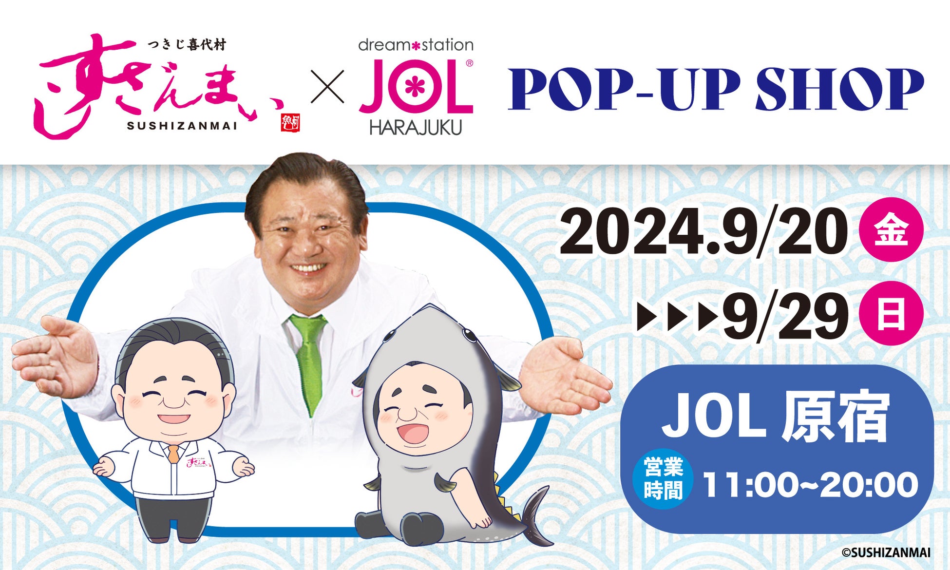 異業種の会社間と作品を繋ぐプロデュース会社である株式会社アイライツ(本社:東京都中央区、代表取締役:石川 哲也)は、寿司チェーン店『すしざんまい』のPOP-UP SHOPの開催を決定いたしました。2024年9月20日(金)~9月29日(日)までの10日間、原宿にある商業施設・JOL原宿にて開催します。
