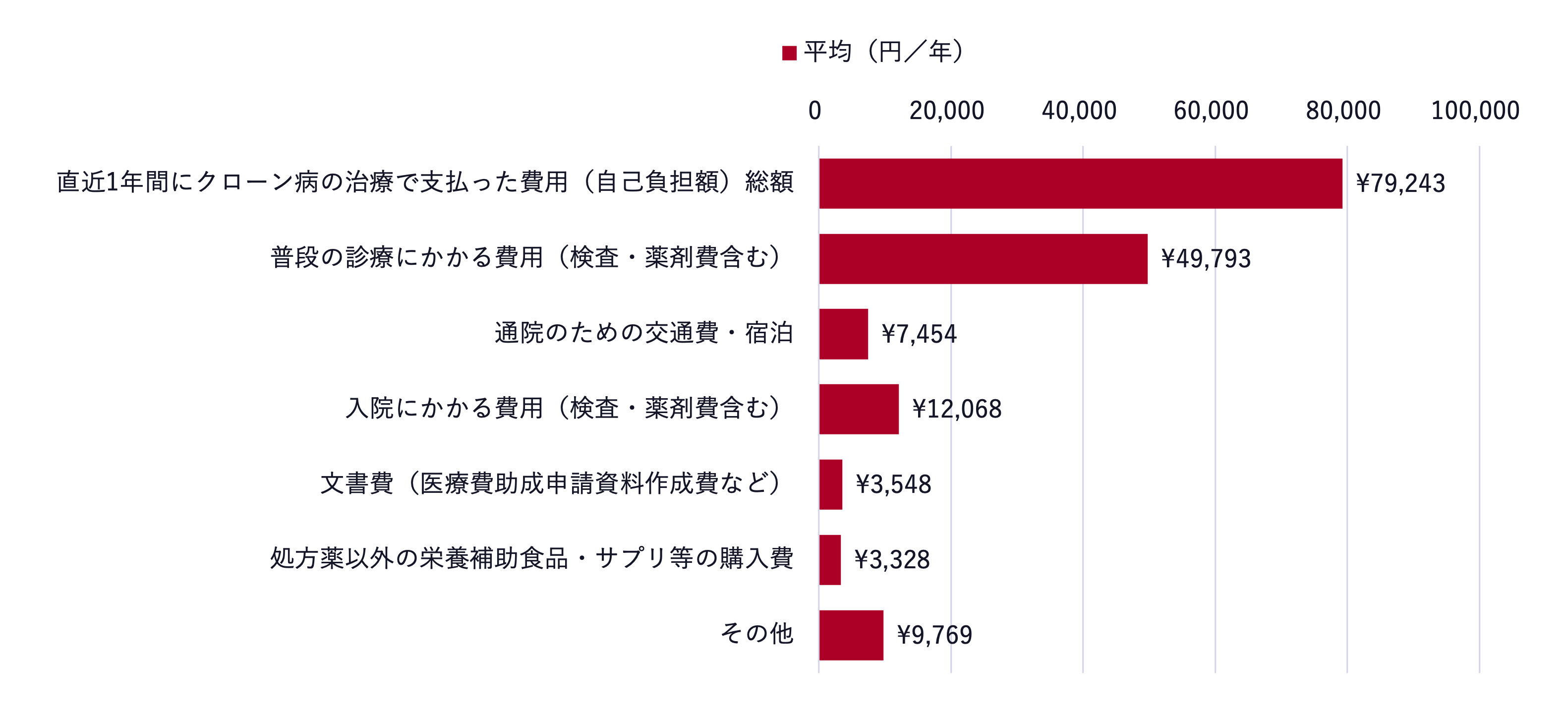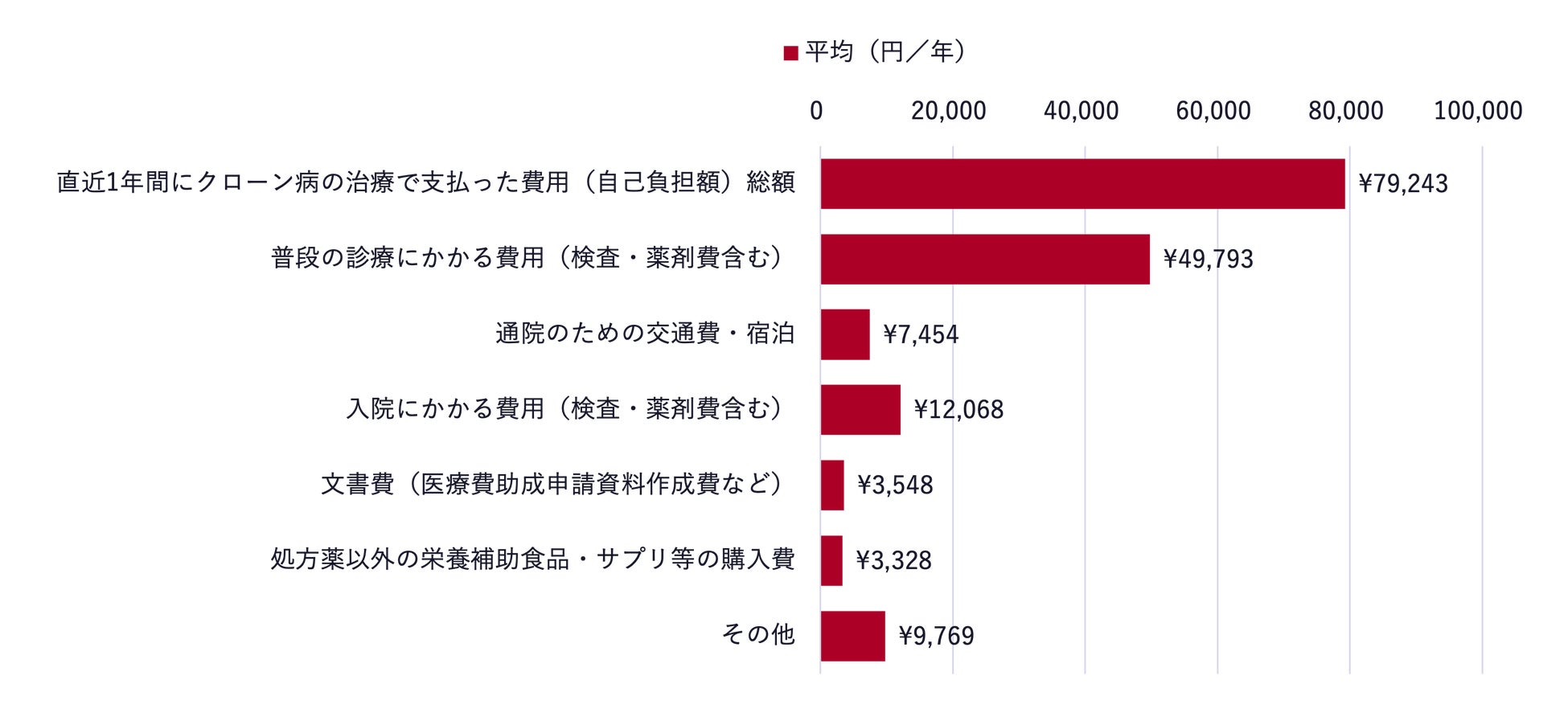 患者調査:直近1年間にクローン病の治療で支払った費用(自己負担額)を教えてください。また、その内訳を教えてください。