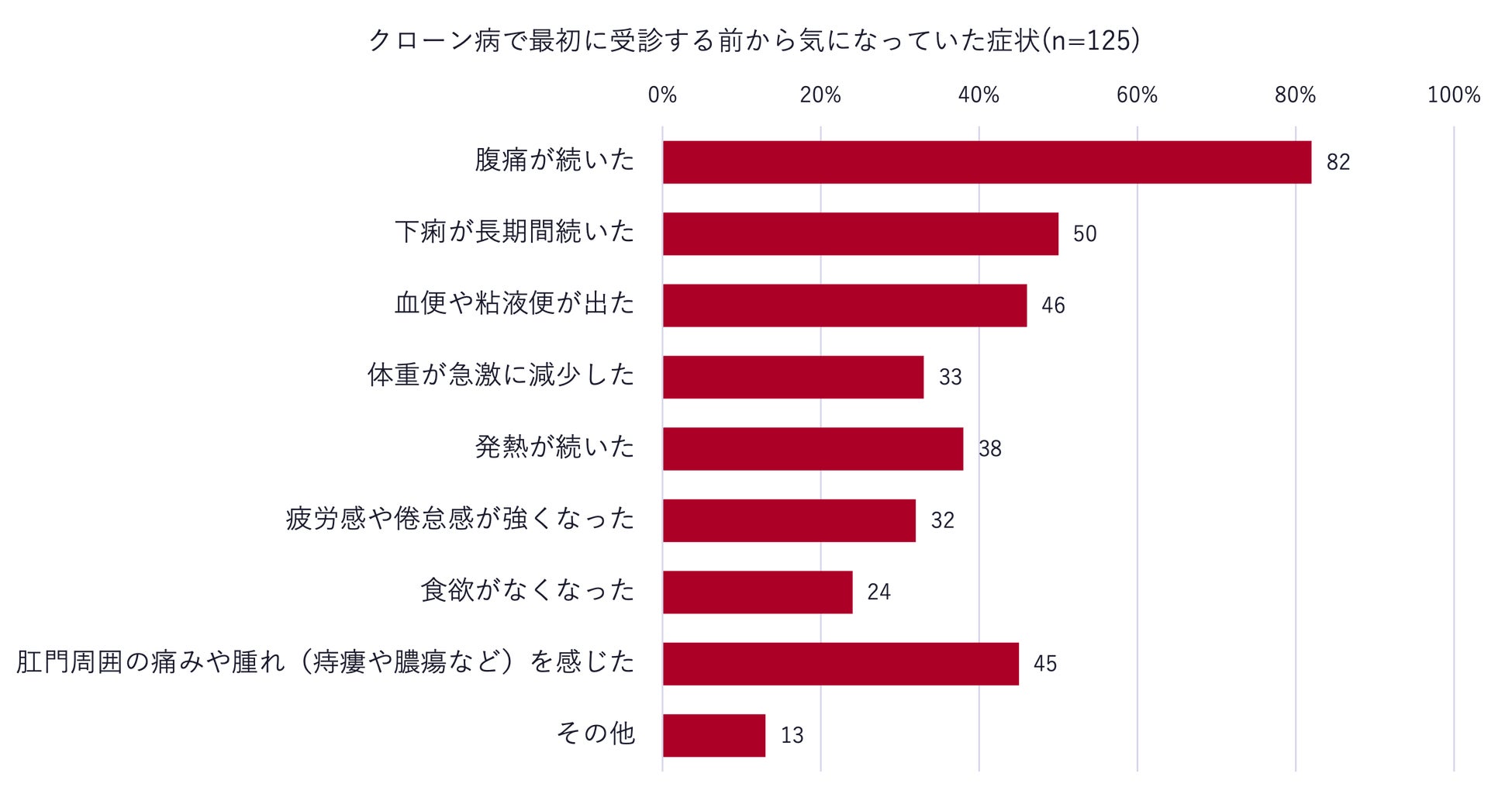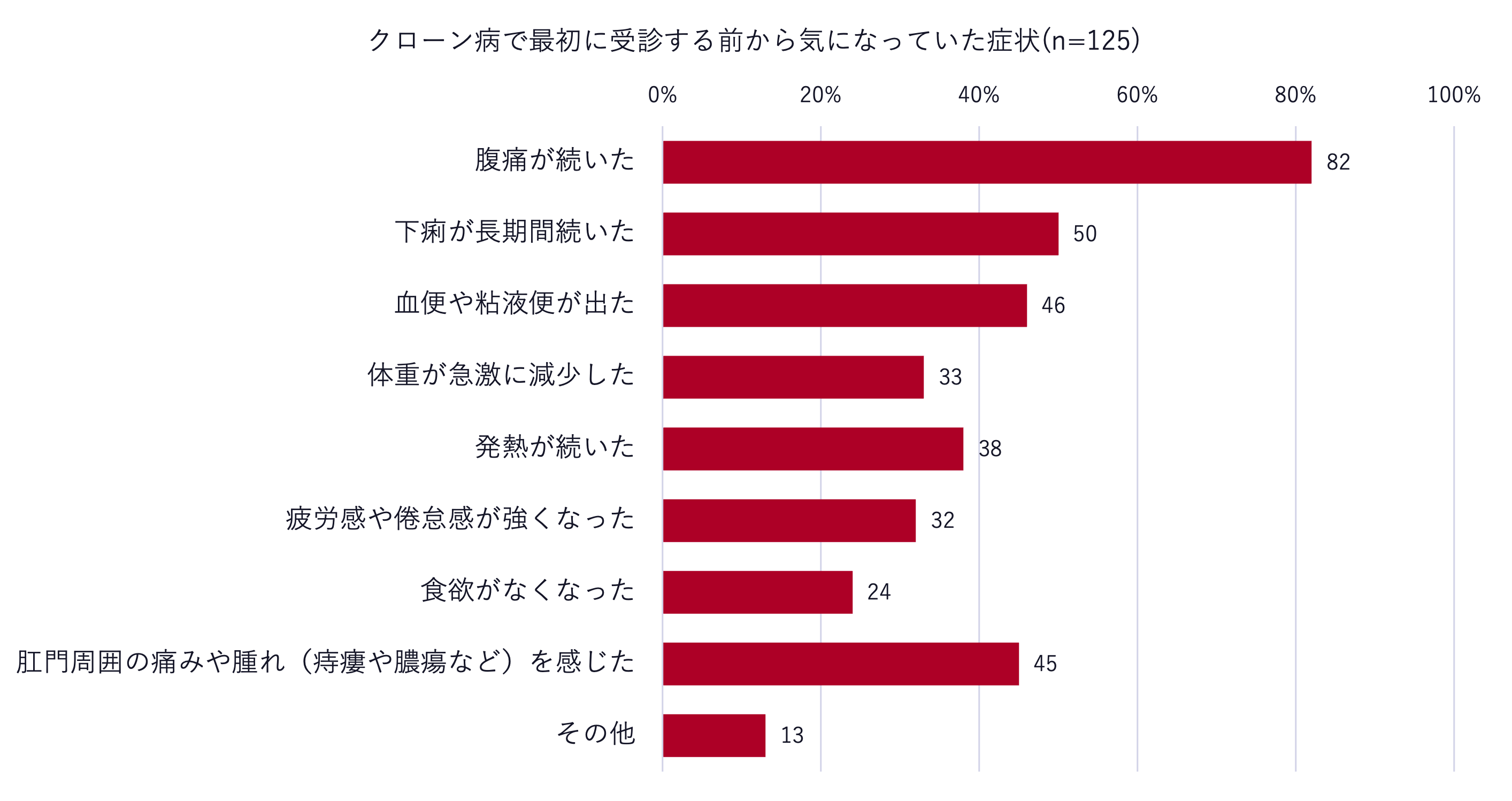 患者調査:クローン病で医療機関に最初に受診する前から気になっていた症状を教えてください。
