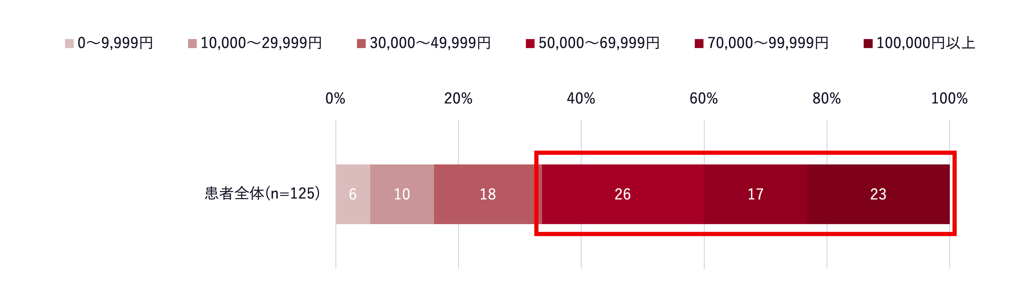 ■ 年間⾃⼰負担5万円以上が約7割、10万円超も2割超