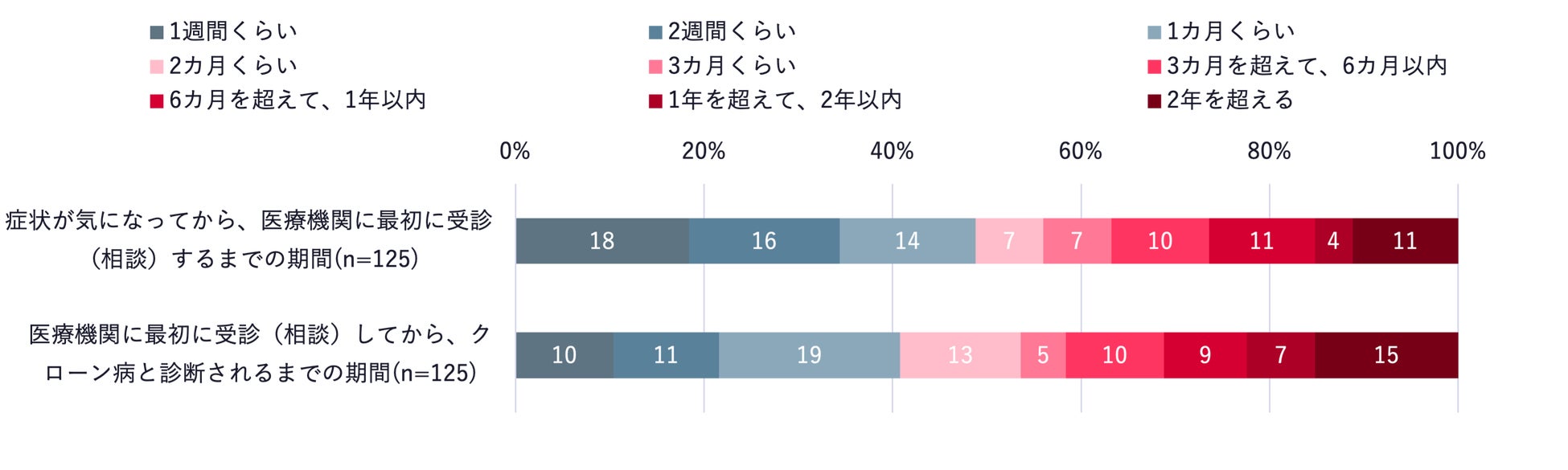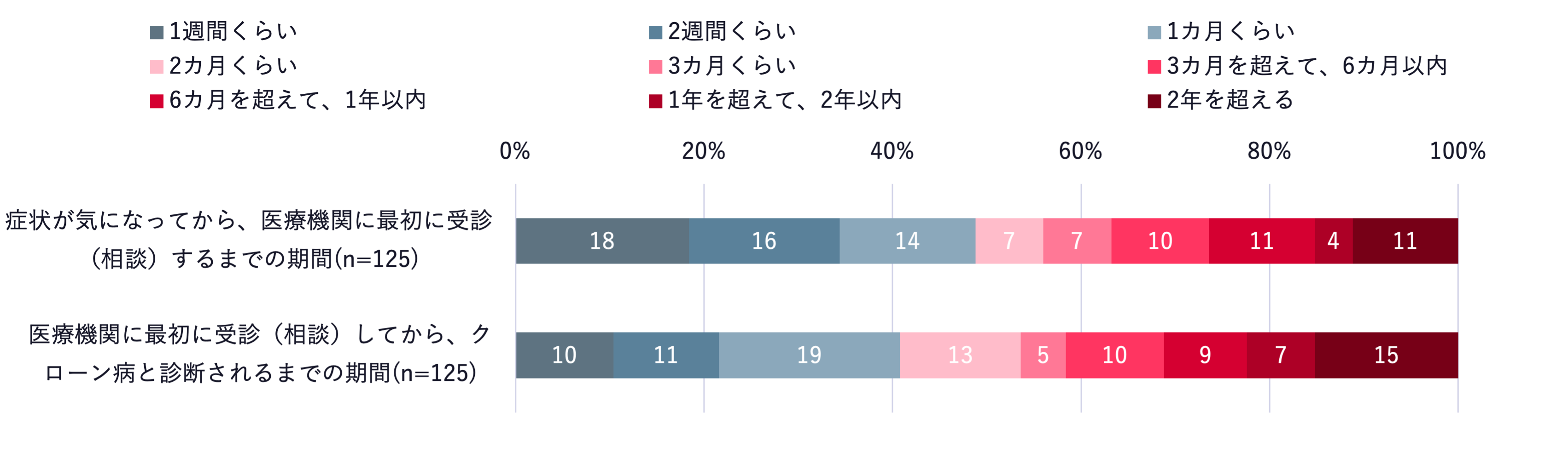 患者調査:クローン病の症状が気になってから医療機関に最初に受診(相談)するまでの期間を教えてください。