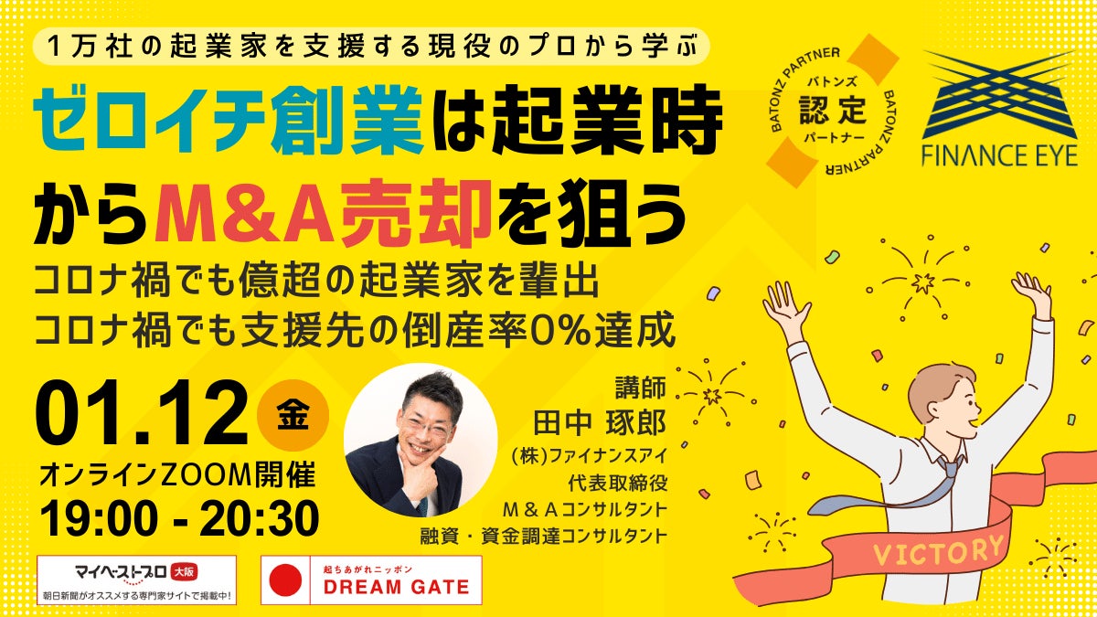 スタートアップなどの起業でゼロイチ創業する時にも、創業時からイグジットの出口戦略としてM&Aや事業承継を意識しておくことで、スムーズな起業や事業価値向上の目標設計をすることができ、安易なゼロイチ創業よりも成功する確度が高く、イグジットもしやすいという事を伝えます。