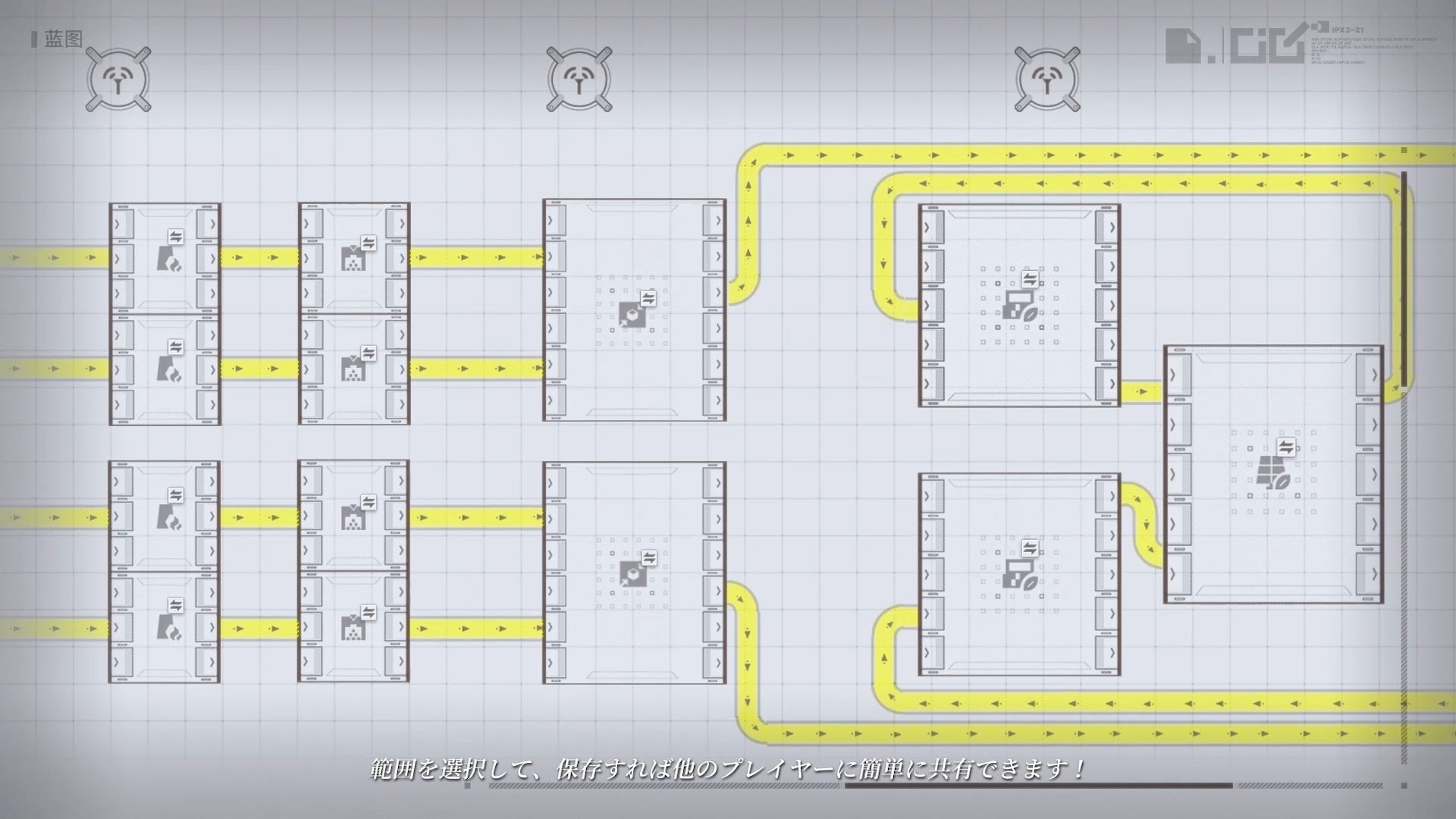 「工業図面システム」により、プレイヤーは工場の建設や生産ラインの構築をより手軽に行えるようになります。研究の進行に応じて新しい設備や技術が解放され、対応する図面を使うことで効率的な生産環境を整えることが可能です。
