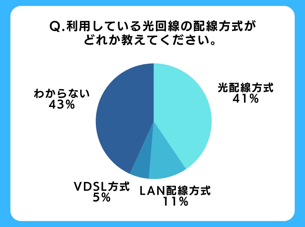 「わからない」と答えた人が43%と最も多く、集合住宅における光回線の配線方式についての認知度が低いことが伺えます。