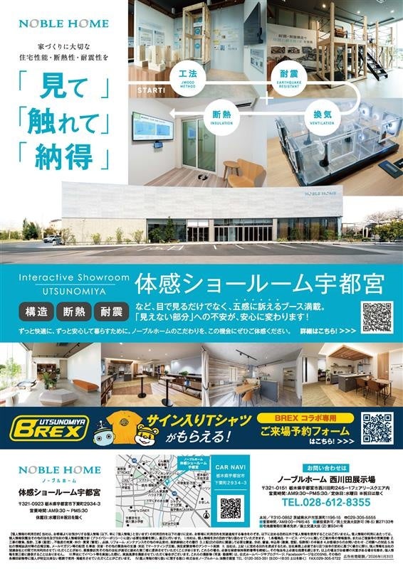 ノーブルホームは、この体感ショールーム宇都宮や、栃木エリアでの住生活事業の展開拡大のほか、宇都宮ブレックスや栃木ゴールデンブレーブスのスポンサーなど、栃木エリアの地域貢献や認知拡大の取り組みも積極的に行っています。