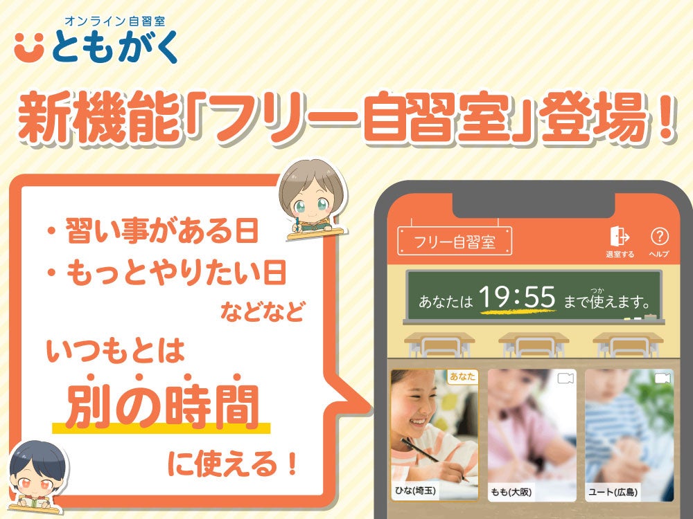 毎日、同じ時間に、いつもの仲間と「ともに学ぶ」ことで、お子さまのやる気を引き出し、家庭学習の習慣化を実現する「ともがく」に、いつもとは別の時間に入室できる「フリー自習室」機能がリリースされました!