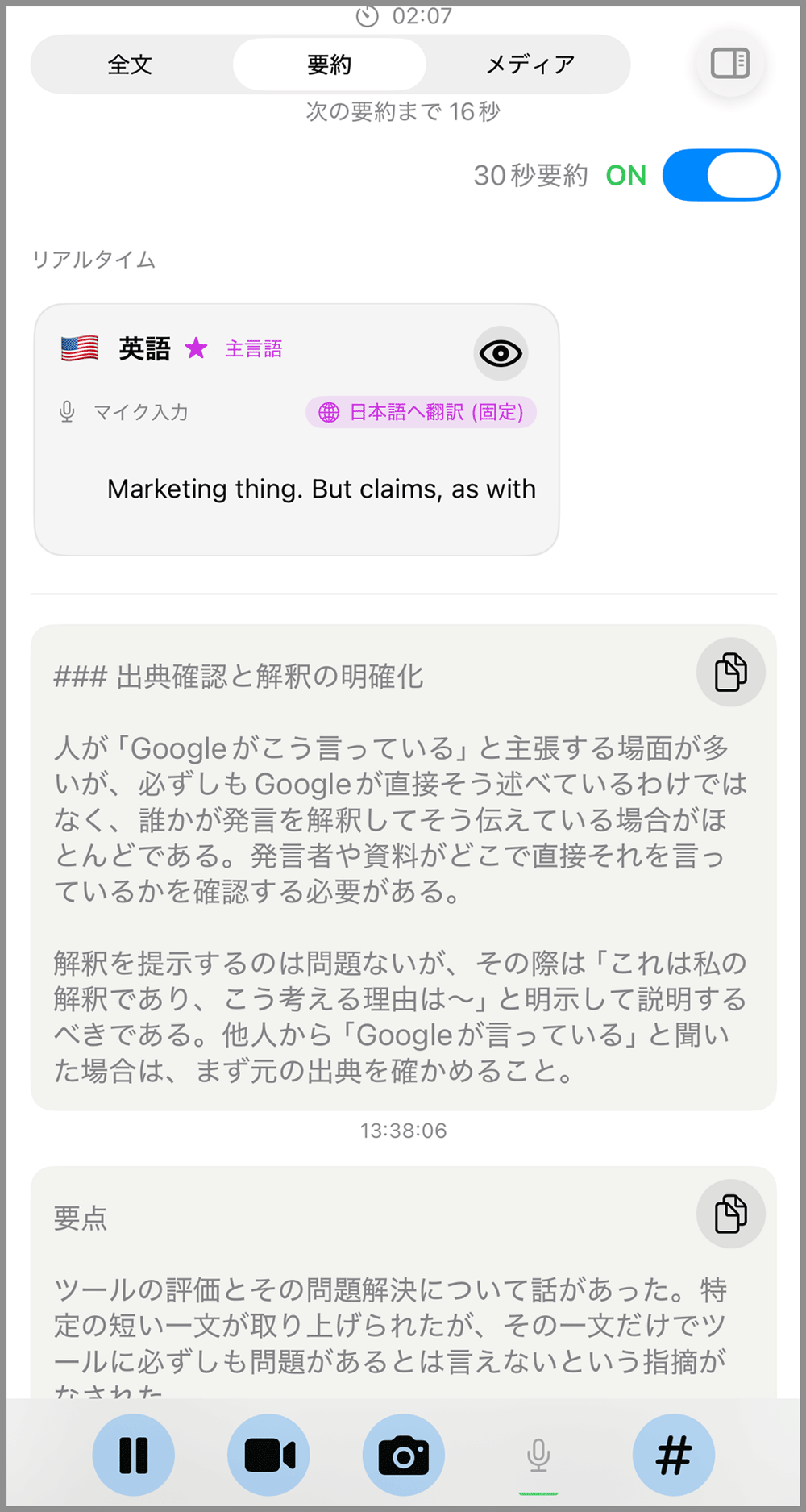 理解を深める要約と質問支援 - 30秒ごとの要約
