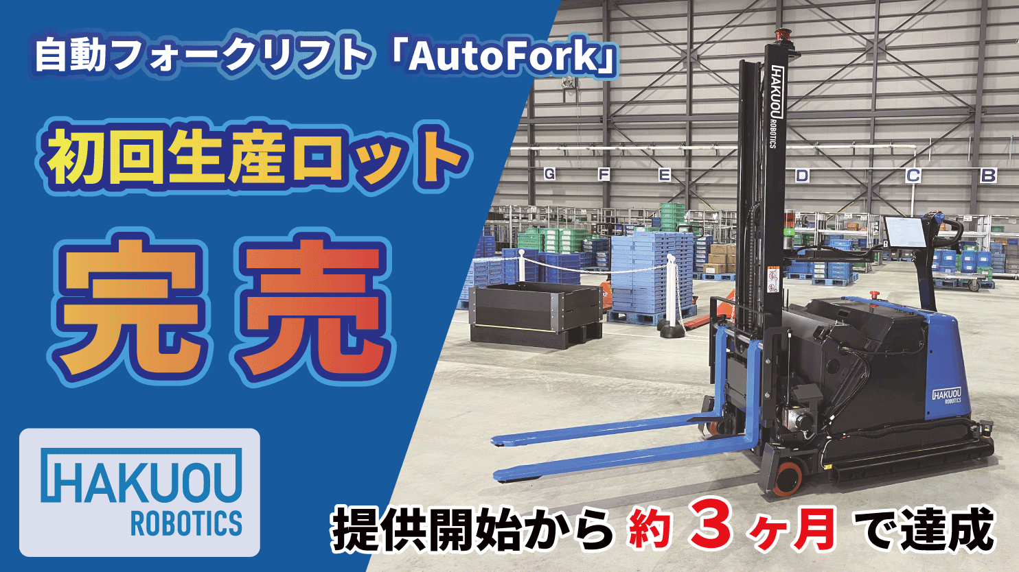 株式会社ハクオウロボティクス(本社:東京都荒川区、代表取締役:鈴木 智広)は、自動フォークリフト「AutoFork」量産モデルについて、2025年12月末の提供開始から約3か月で、初回生産ロット(10台)が完売し、生産中の次回ロットについても受注が進行していることをお知らせいたします。