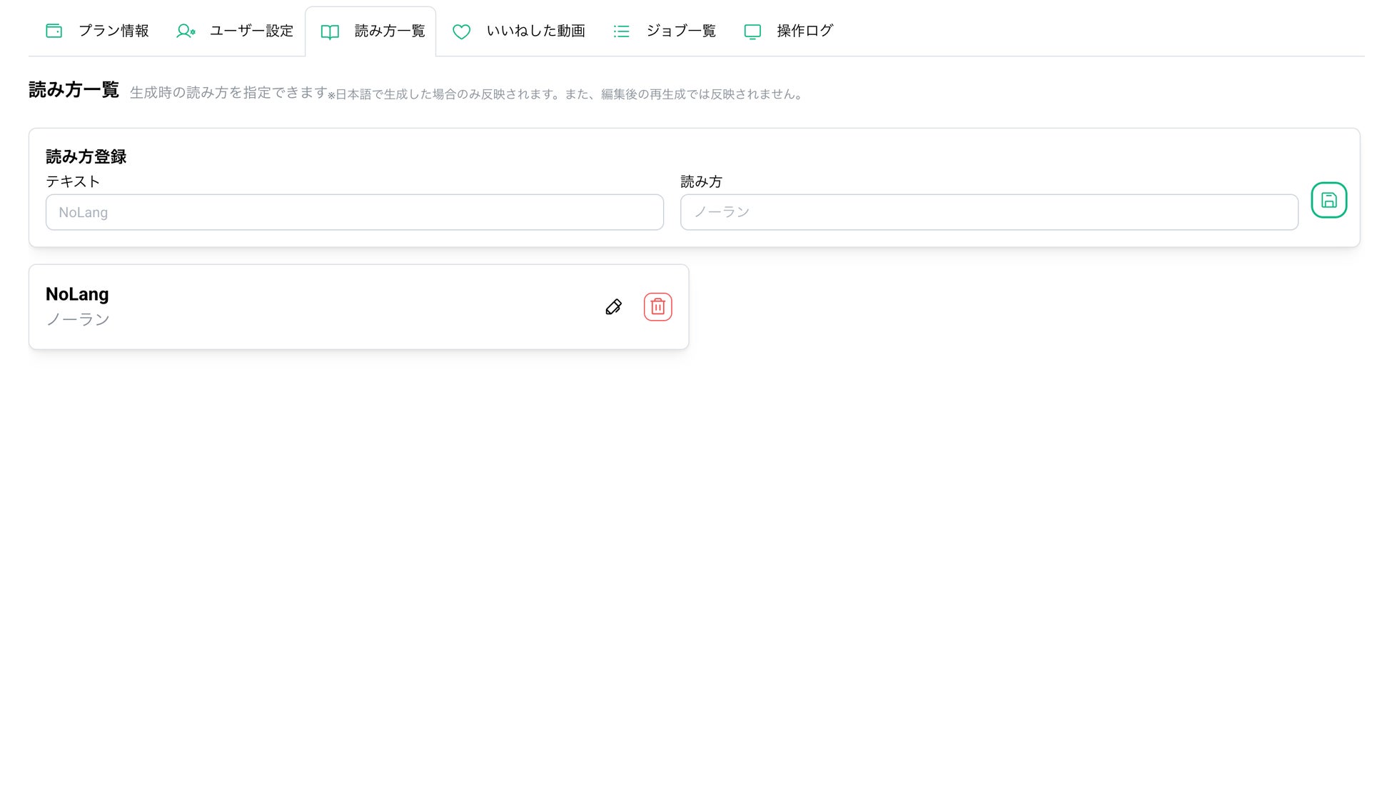 本機能は、任意の「テキスト(表記)」と、それに対応する「正しい読み方(発音)」を登録できる機能です。一度辞書に登録するだけで、それ以降AIが動画を生成する際、登録された固有名詞や専門用語を正しい発音で読み上げます。