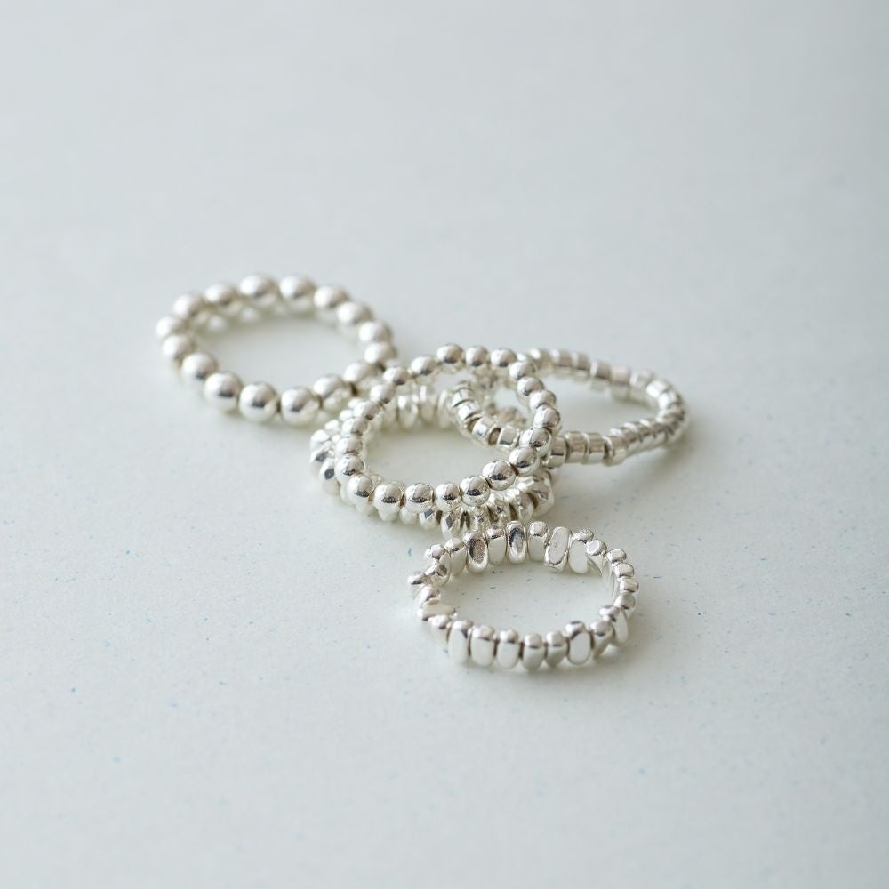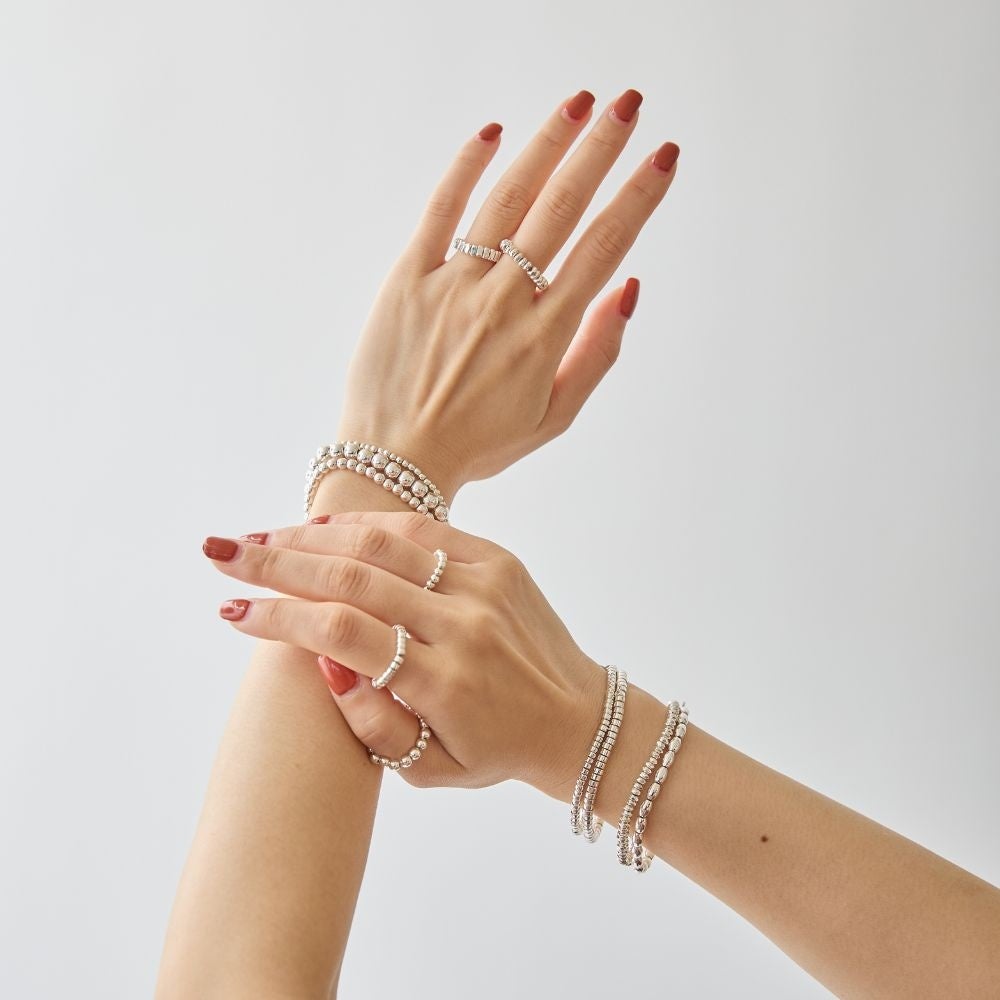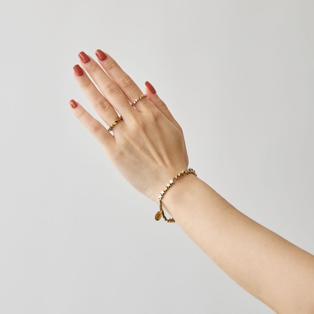 ブレスレット・リングともに伸縮性のあるフリーサイズ仕様。