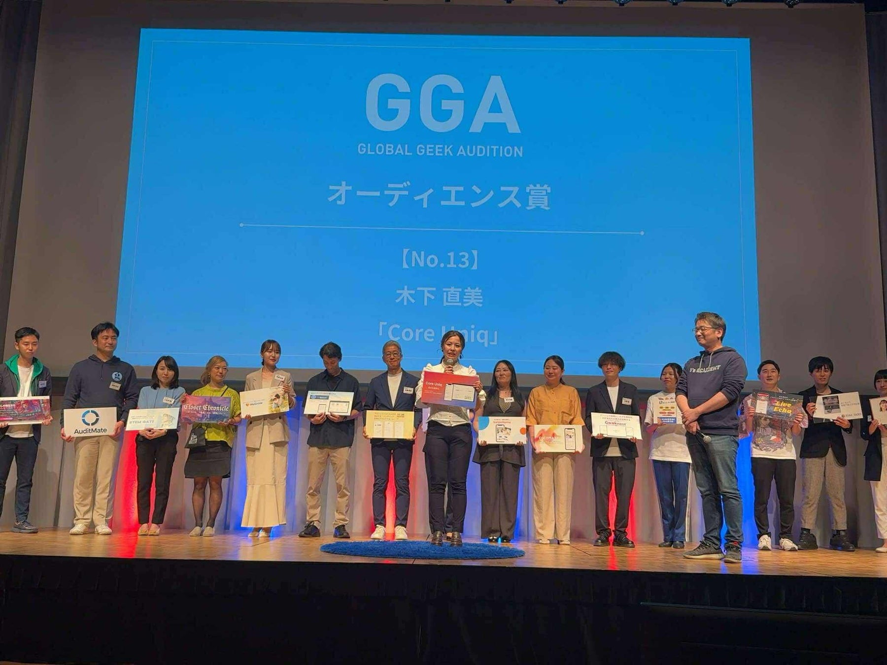 Givin' Back株式会社の木下直美が、ジーズアカデミーのプロダクトデモデー『GLOBAL GEEK AUDITION』にて「Core Uniq」が第1位と「オーディエンス賞」の2冠を達成!