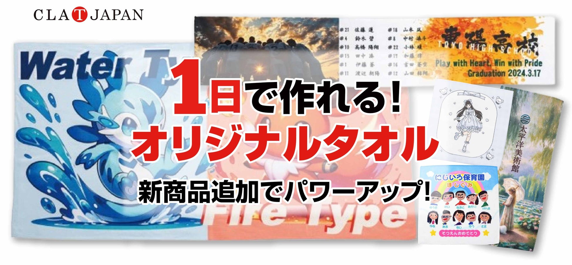 株式会社フォーカス(本社:山梨県甲斐市、代表取締役 常松憲太)が運営するオリジナルグッズ製作サイト「CLAT-JAPAN(読み:クラティージャパン)は、写真やイラストが鮮明にプリントできる新商品「ビビッドタオル」の販売を開始しました。