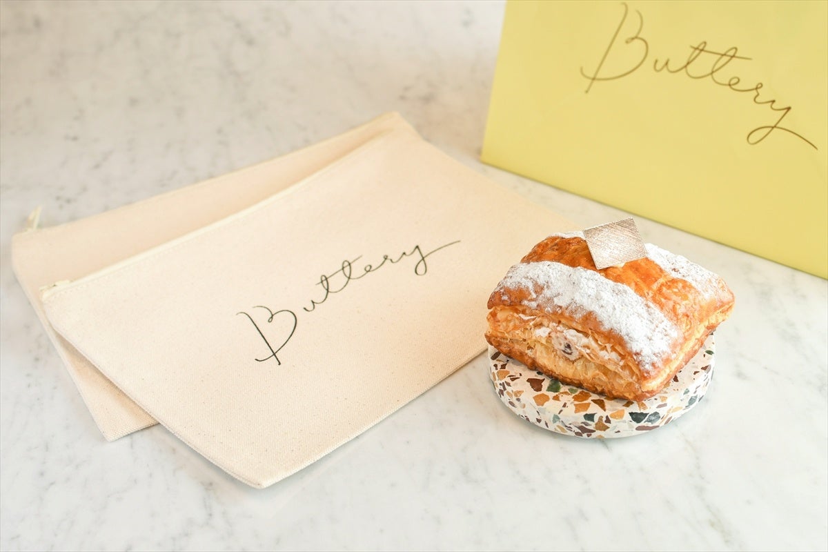 また、4月1日(火)~4月30日(水)までの期間中、Butteryそよら鈴鹿白子にて、1回のご注文で3,000円(税込み)以上ご購入いただいたお客様には、ノベルティの「バタリーロゴポーチ」をプレゼントします。なお、ノベルティは数量限定につき、無くなり次第配布終了となりますので予めご了承ください。