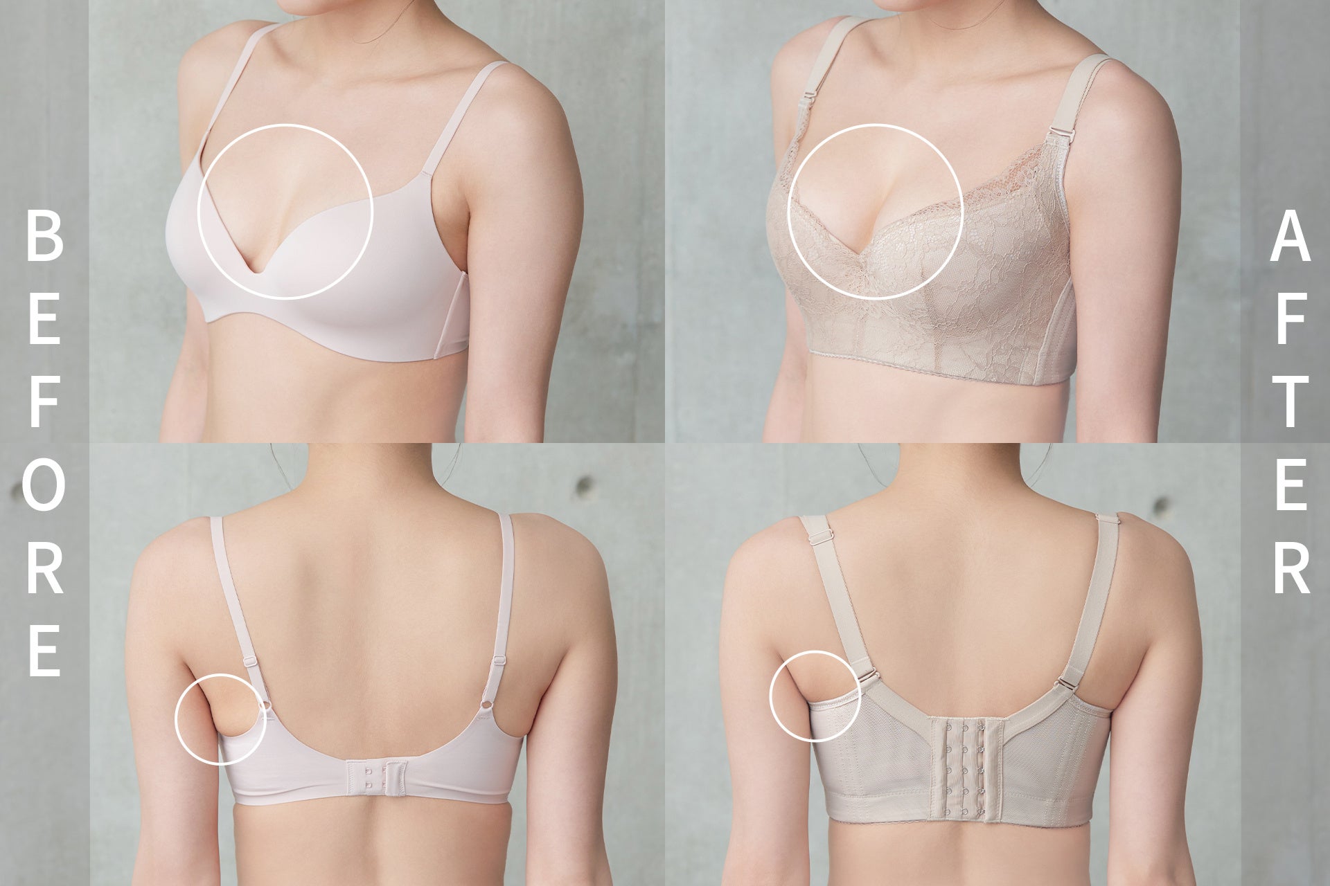 「脇から背中にかけて流れてしまうお肉が気になる」「産後気づけばバストのハリがなくなった、もしかして垂れてしまった…?」そんな声に応えて生まれたのが『脇肉カップインブラ』。