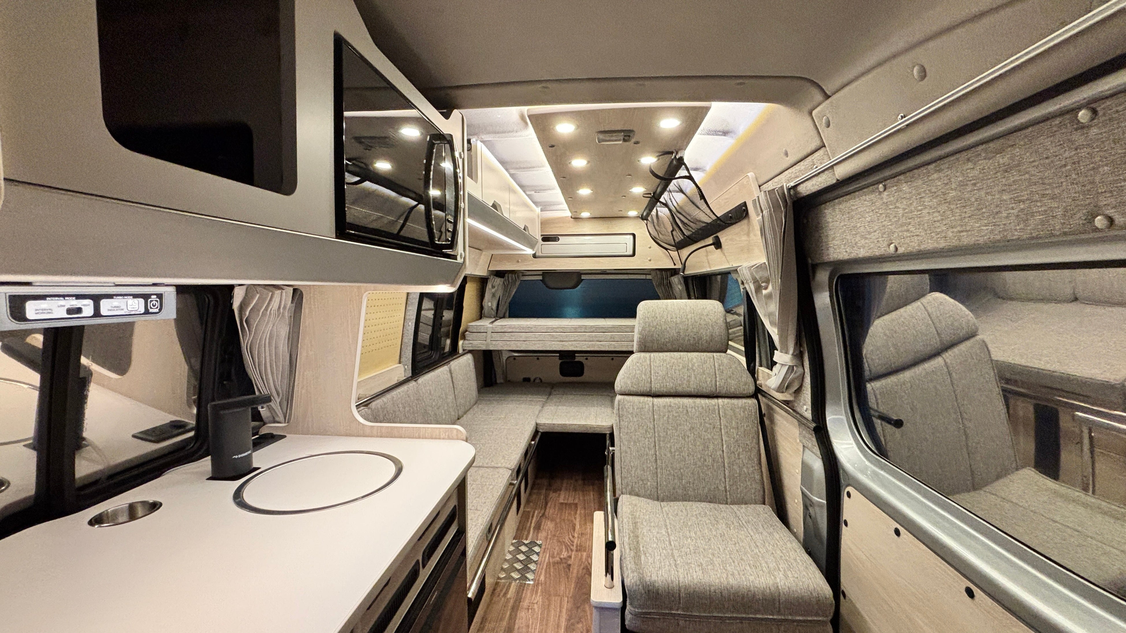 設備:蓋付シンク、ポータブルウォータータップ、電子レンジ、冷蔵庫(58L)、リアスピーカー、清水・排水タンク各12L、