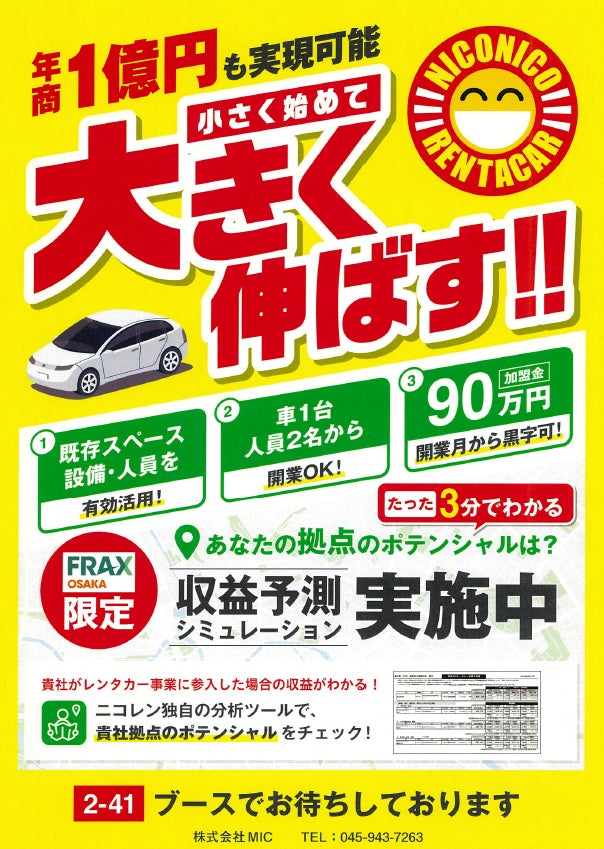 店舗数拡大中のニコニコレンタカー、「第3回 FRAX OSAKA」に出展!