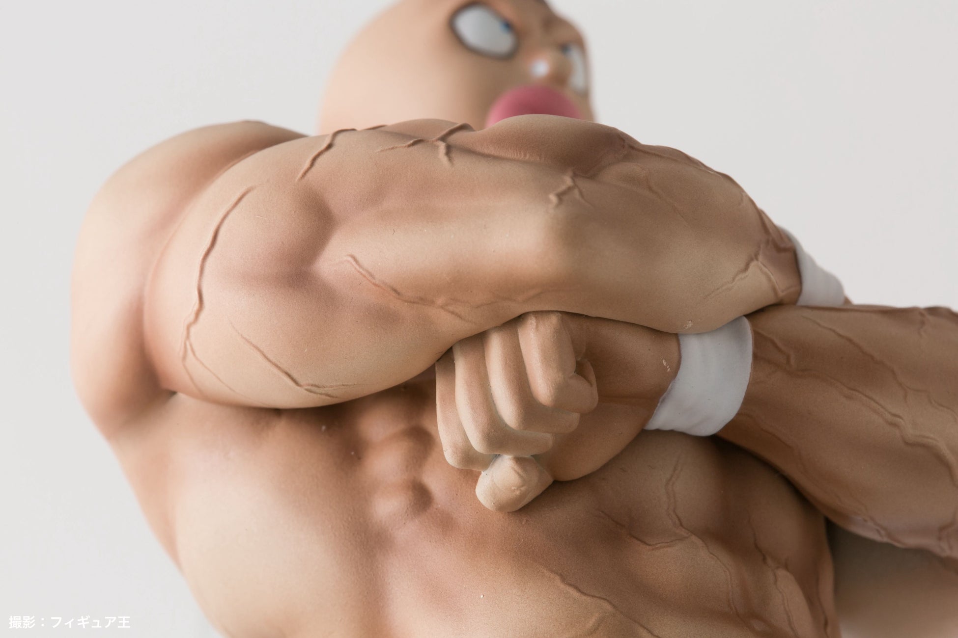 ボディ部分については、原作のイラストを参考にしつつも人体のリアルな筋肉造形を随所に落とし込み、イラストとリアルの絶妙なバランスをとった原型となっています。