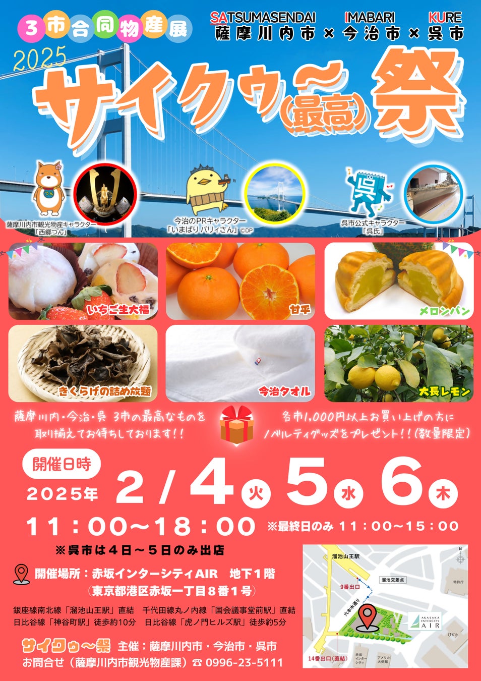 県呉市・鹿児島県薩摩川内市」の3市が協力した3市合同物産展「2025サイクゥ~(最