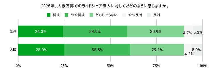 調査結果から、大阪府民をはじめとする市民の間で、万博期間中のライドシェア導入に対する賛成割合は6割と高いことが確認されました。