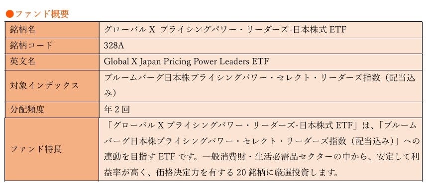 Global X Japan株式会社 「グローバルX プライシングパワー・リーダーズ-日本株式ETF【328A】東京証券取引所より上場承認