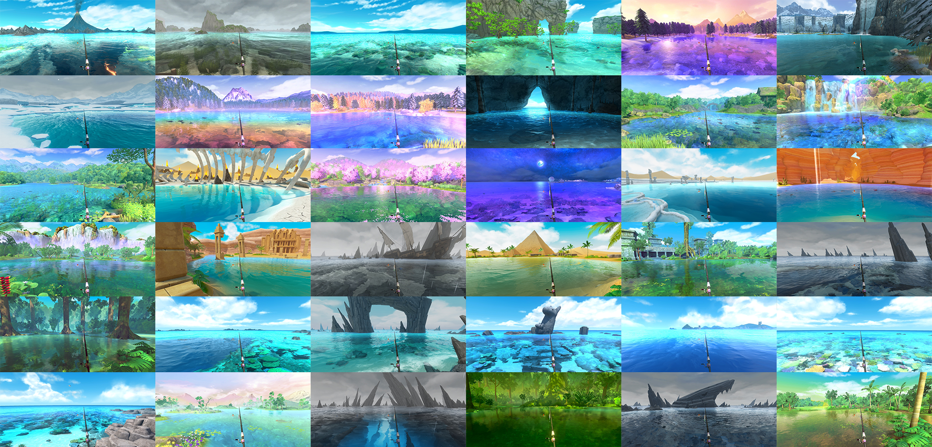 40か所のユニークな釣り場を舞台に、180種類以上の魚たちが登場。70種類以上の道具を組み合わせて、大物を狙う戦略性が楽しめ、美しいグラフィックと心地よい環境音の中で、日常を忘れてゆったりと釣りを楽しむことができます。