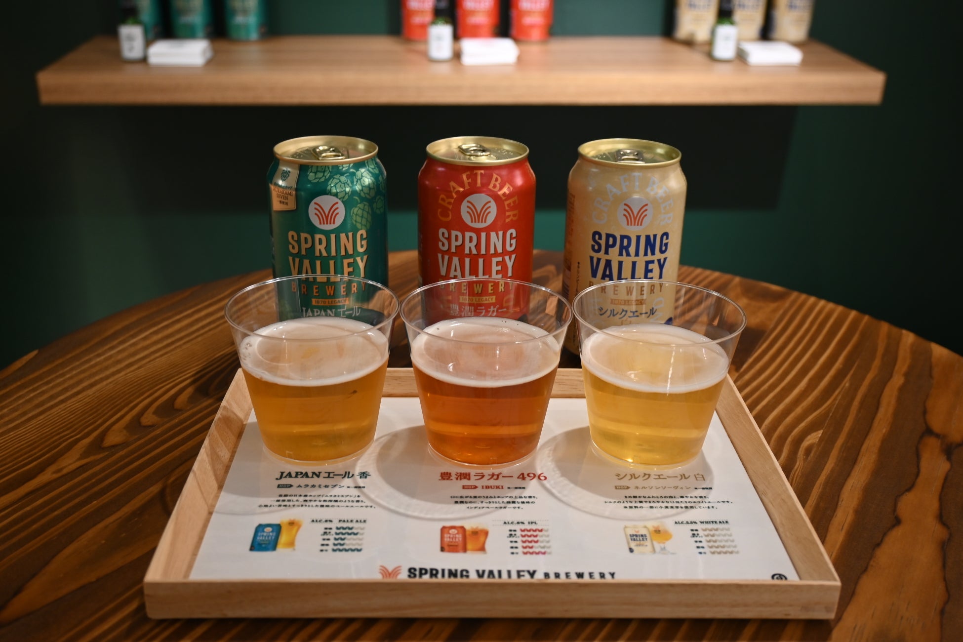 商品名 ①「SPRING VALLEY BREWERY 豊潤ラガー 496」②「SPRING VALLEY BREWERY シルクエール 白」③「SPRING VALLEY BREWERY JAPANエール 香」