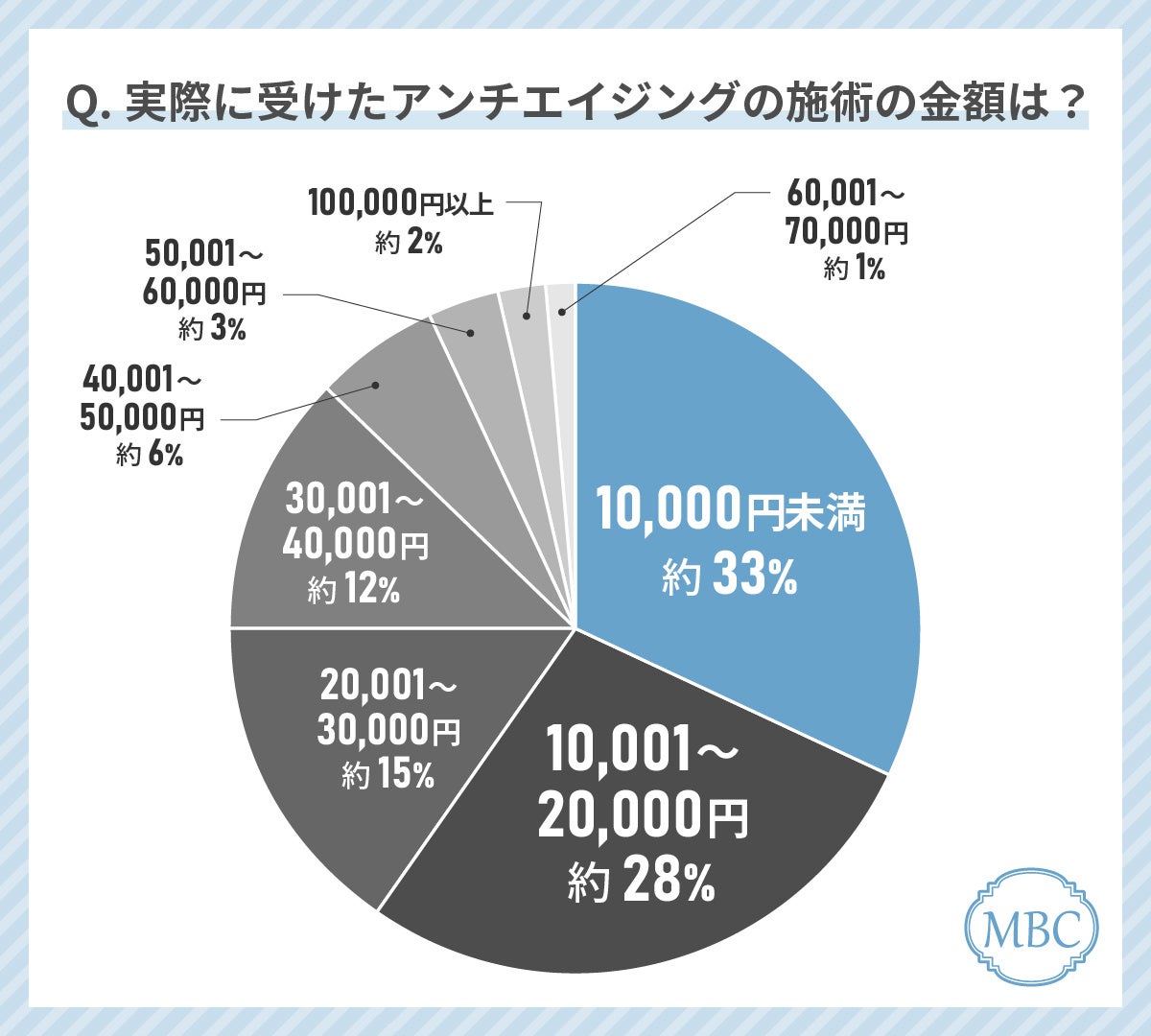 「実際に受けたアンチエイジングの施術メニューの金額をお教えください。」とアンケート調査した結果、