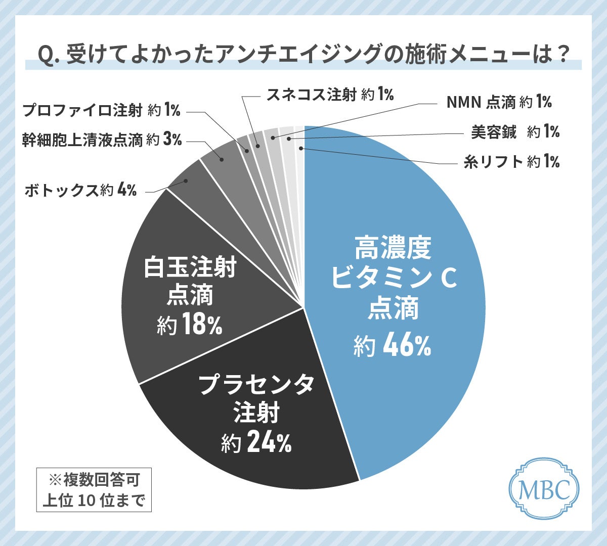 「受けてよかったと思ったアンチエイジングの施術メニューをお答えください。(選択式複数回答可)」とアンケート調査した結果、