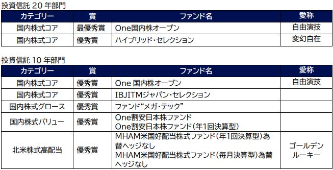 運用するファンドに関しては、「One国内株オープン」が「投資信託 20 年部門」で 5 年連続の最 優秀賞受賞、「ハイブリッド・セレクション」は、8 年連続の受賞となりました。