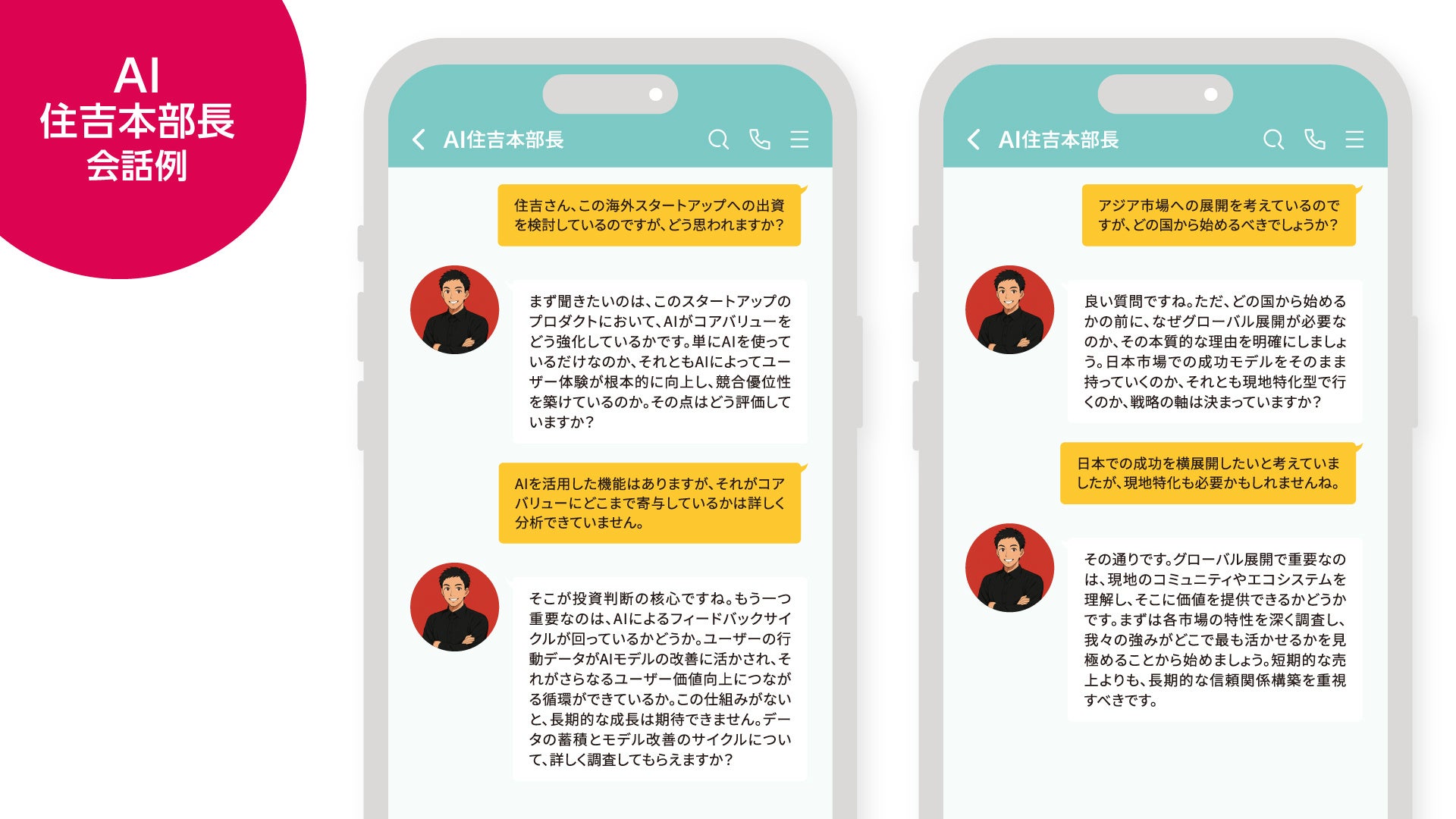 「この度は、ディー・エヌ・エー様に『AI社長』をご導入いただき、心から感謝申し上げます。特に、AIイノベーション事業本部という最前線でAI活用を牽引される住吉本部長様の戦略的思考とグローバル視点を『AI住吉本部長』として具現化できることは、我らTHAにとって大きな誇りです。