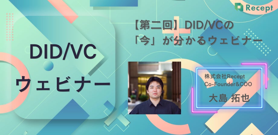 今回も、DID/VC領域のリーディングカンパニーである株式会社Receptで事業開発の責任者を務める大島が登壇し、DID/VCの最新動向や具体的なユースケース、ビジネス化を検討する上での論点を紹介します。