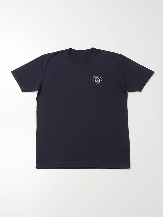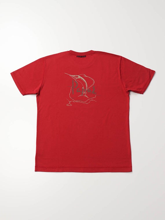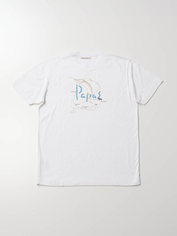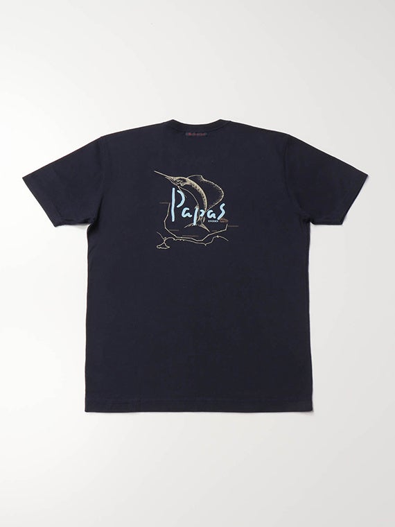 左胸にカジキとロゴのプリント、背中には江ノ電路線図のプリントをあしらったTシャツ