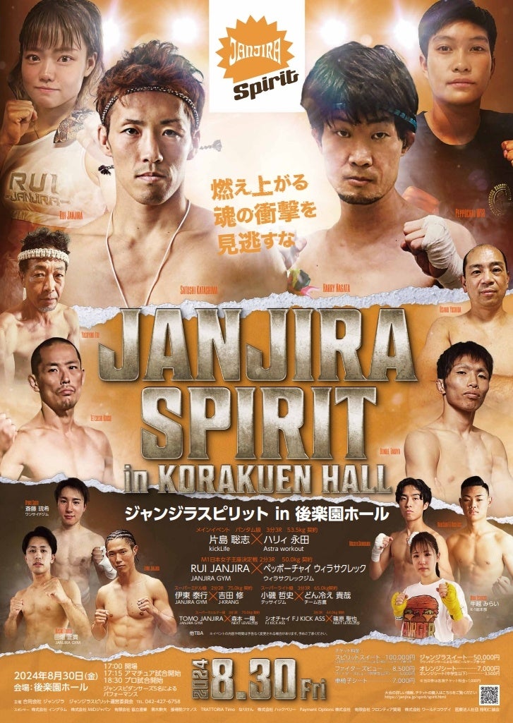 8/30(金)キックボクシングイベント『ジャンジラスピリットin 後楽園ホール』チケットペイにて販売中!!