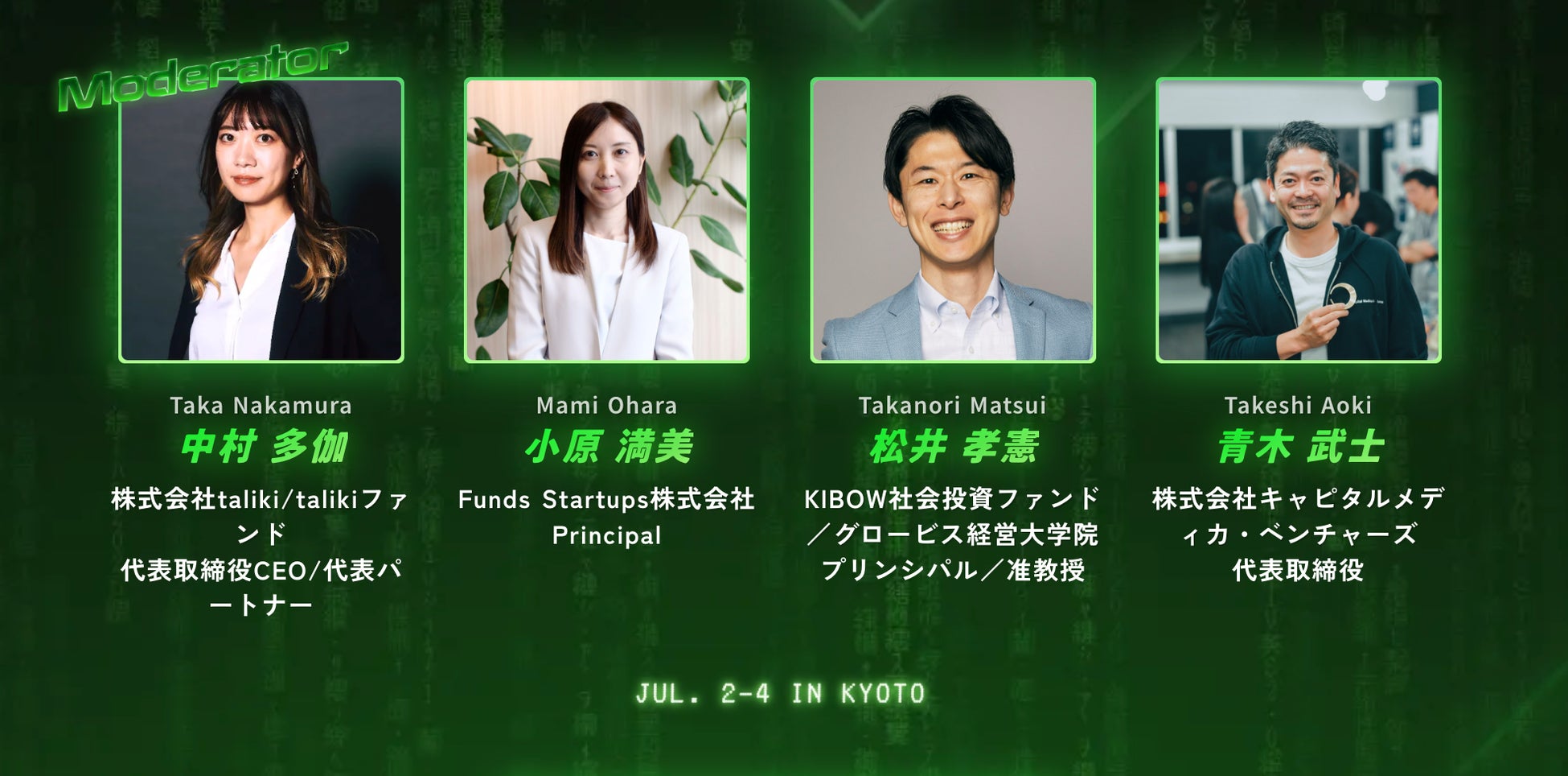 Funds Startups株式会社(本社:東京都渋谷区、代表取締役:前川 寛洋、以下 当社)は、2025年7月2日(水) 〜 4日(金)の3日間にわたり京都市勧業館「みやこめっせ」およびロームシアター京都をメイン会場に開催される「IVS2025 KYOTO」にて、プリンシパルである小原が2つのセッションに登壇することをお知らせいたします。