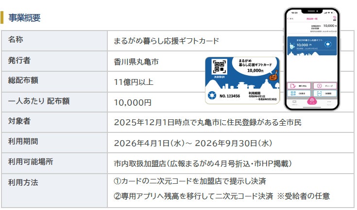 〜香川県丸亀市、 全市民に申請不要で1万円ギフトカードを一斉配布・ 利用開始〜