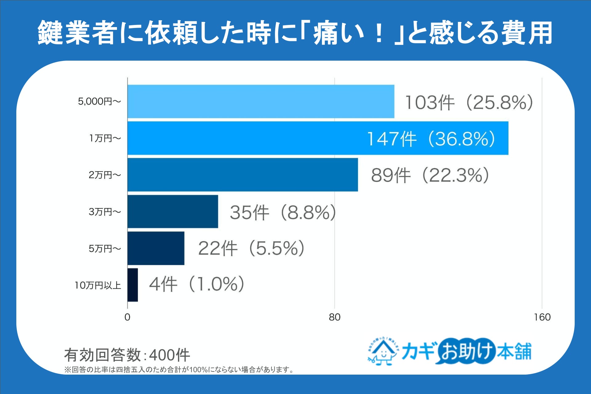 当社の運営する鍵トラブル専門のサービス「カギお助け本舗」では、鍵トラブルで鍵業者に依頼した経験のない全国の18歳以上の男女400人を対象に「鍵の紛失時のコストに関するアンケート」を実施しました。