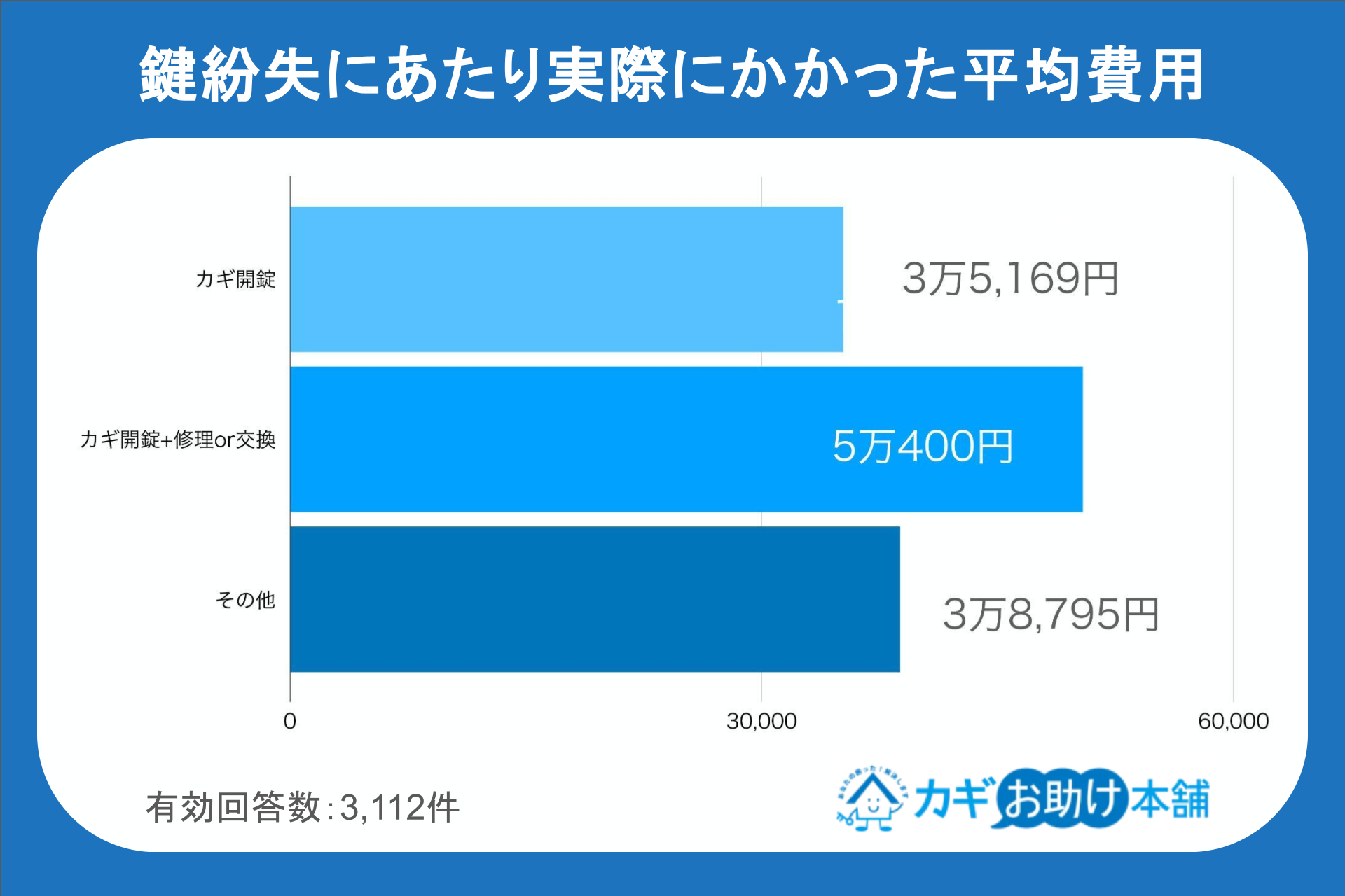 今回の調査では「2万円未満で鍵紛失トラブルを解決できる」と考える層が過半数を占めましたが、現実はその想定を大きく上回ります。