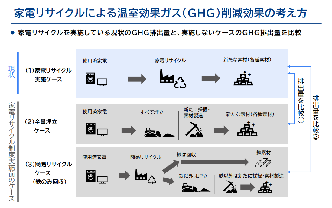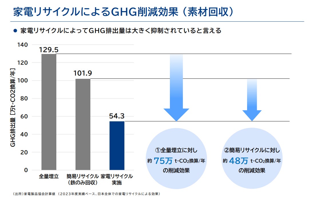 この節目に一般財団法人 家電製品協会〔所在地:東京都千代田区、理事長:槙 公雄(ソニー株式会社 代表取締役 社長 CEO)〕は、最新のデータに基づいて家電リサイクルによるGHG(グリーンハウスガス、温室効果ガス)削減効果を試算いたしました。