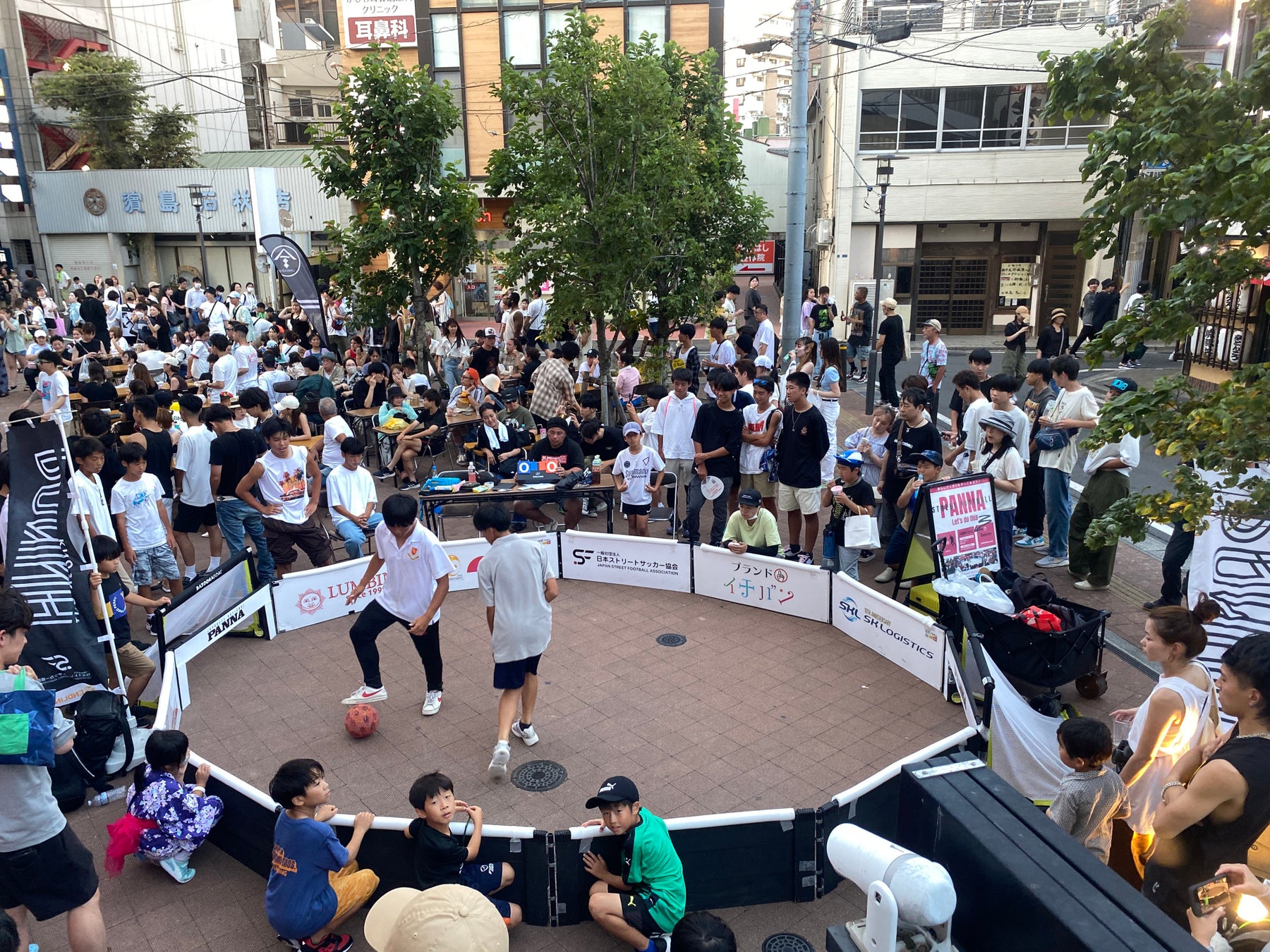 直径5mの囲いで1対1のストリートサッカーイベントを開催。