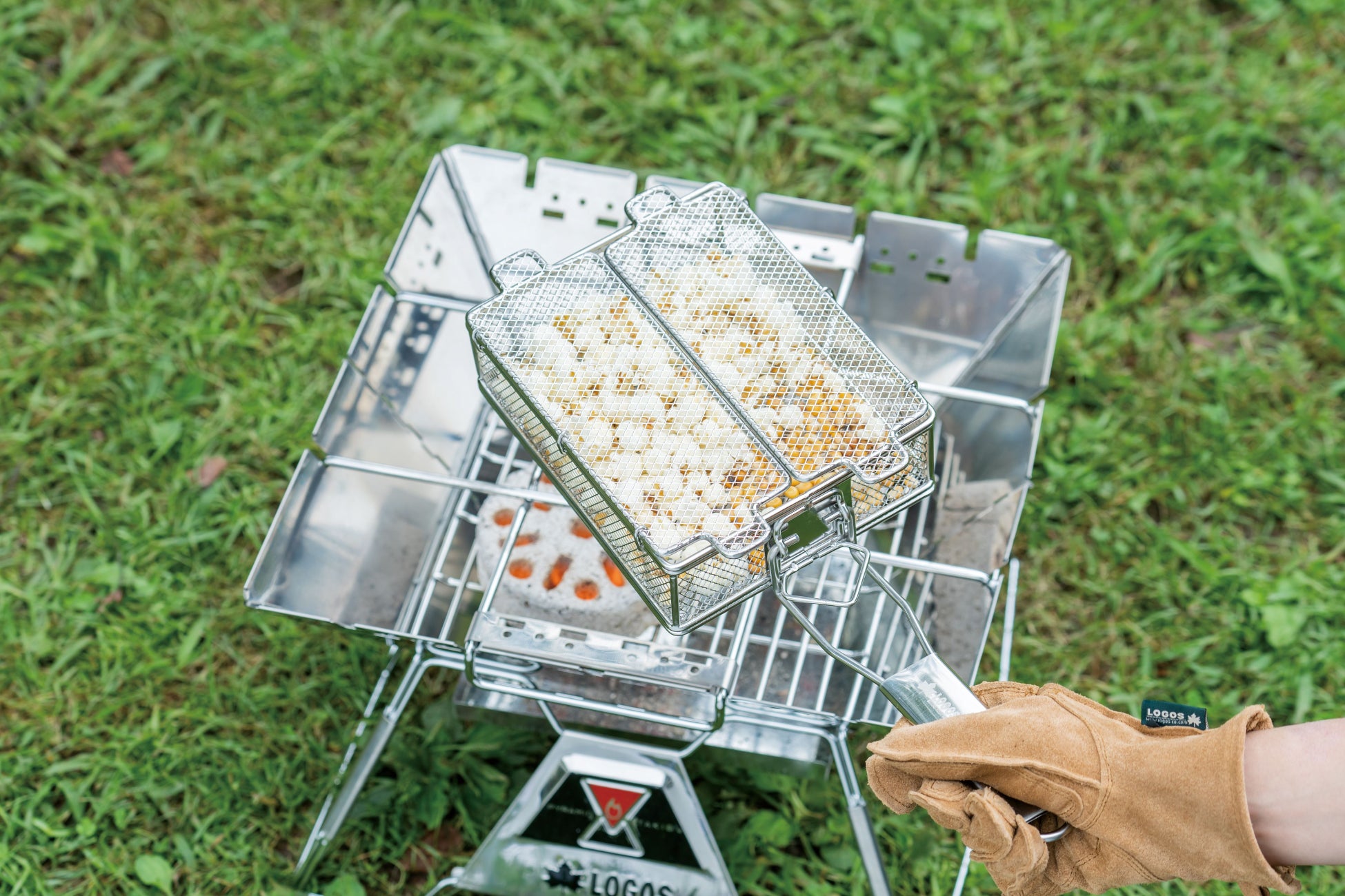 LOGOSのアウトドアギア(焚き火台、炭火もも焼き器)を使った、炭火で作る風味豊かなポップコーン体験!イベント中は使用ギアもお得に購入できるチャンス!
