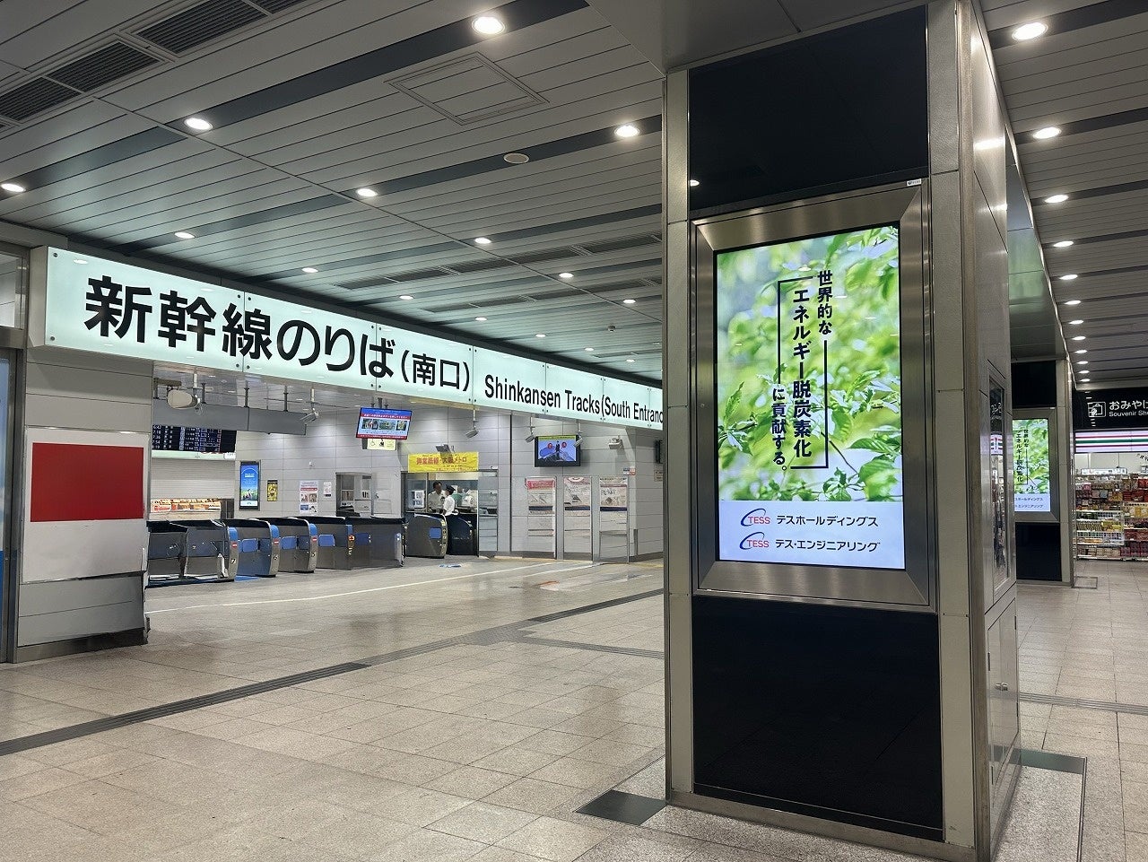 テスホールディングス株式会社(本社:⼤阪市淀川区、代表取締役社⻑:山本 一樹、以下「当社」)と当社の連結子会社であるテス・エンジニアリング株式会社(本社:大阪市淀川区、代表取締役社長:髙崎 敏宏)は、JR西日本新大阪駅 新幹線南口改札前のデジタルサイネージにおいて、広告掲示を開始いたしましたことをお知らせいたします。