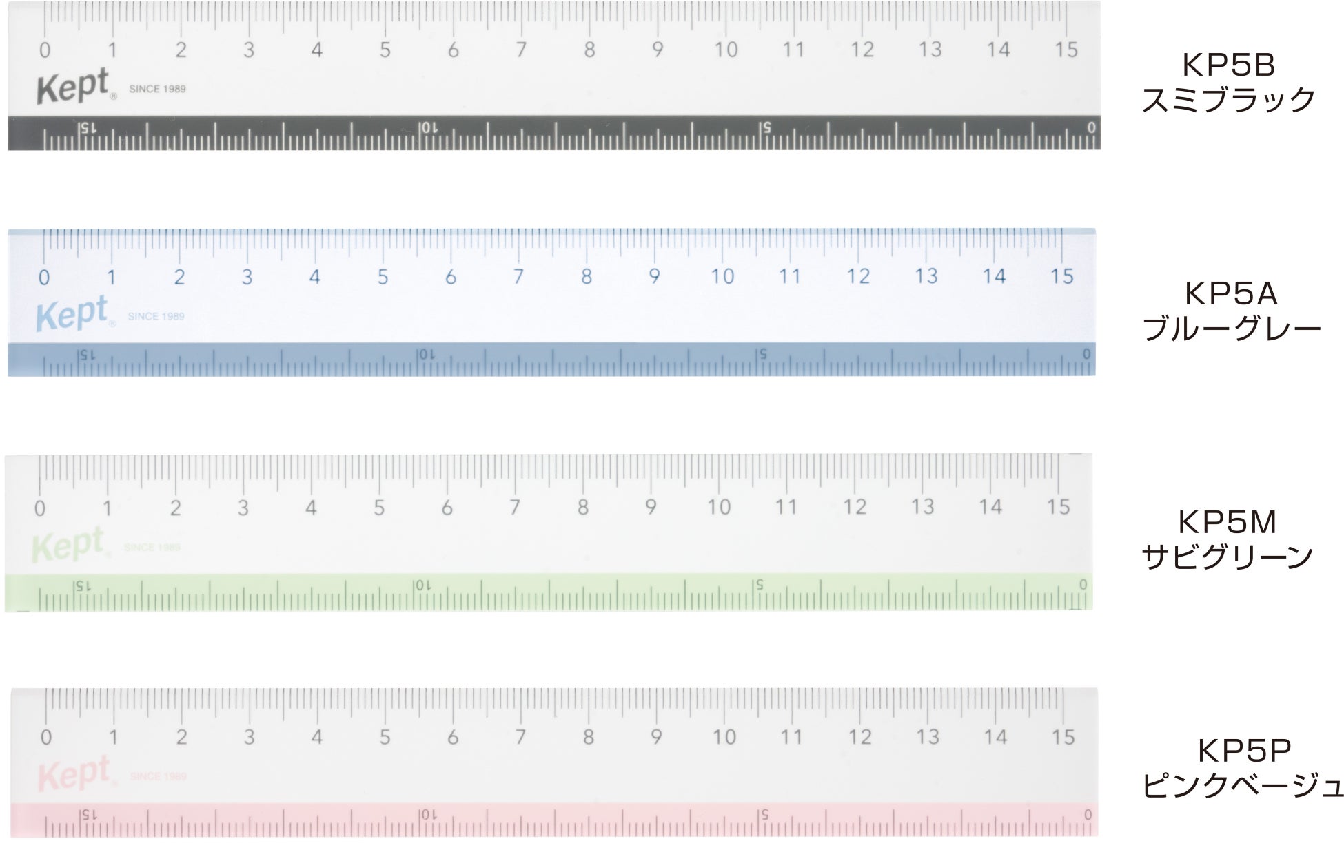 Keptはし0定規は、1cm毎の目盛りが読み取りやすくなっており、目盛りが端(はし)から付いているので、高さや深さを簡単に測ることができます。裏面には、軽く滑らせ簡単に位置合わせができる滑り止め付きとなっています。カラーは全4色で他の小物とカラーを揃える楽しみもあります。